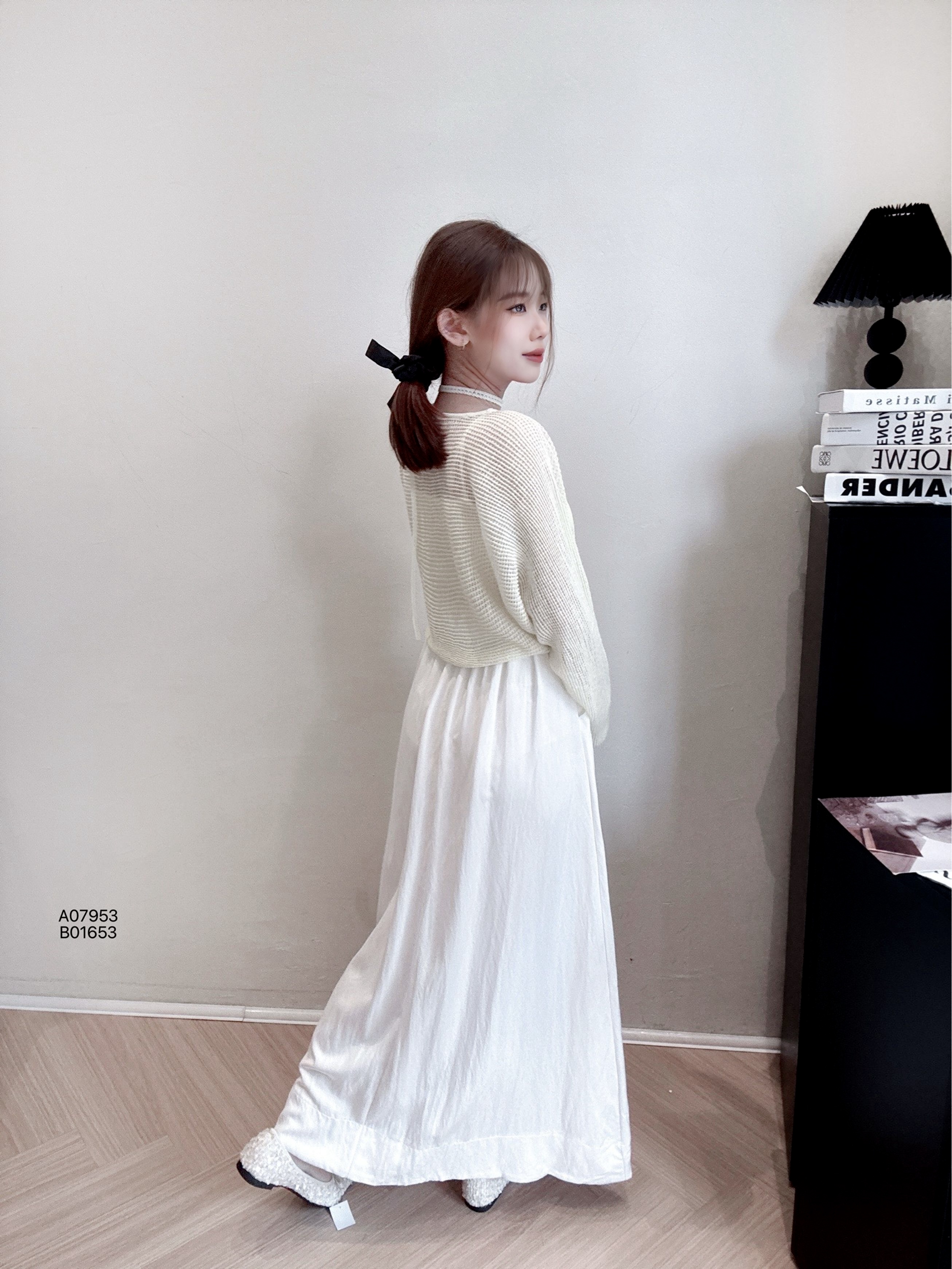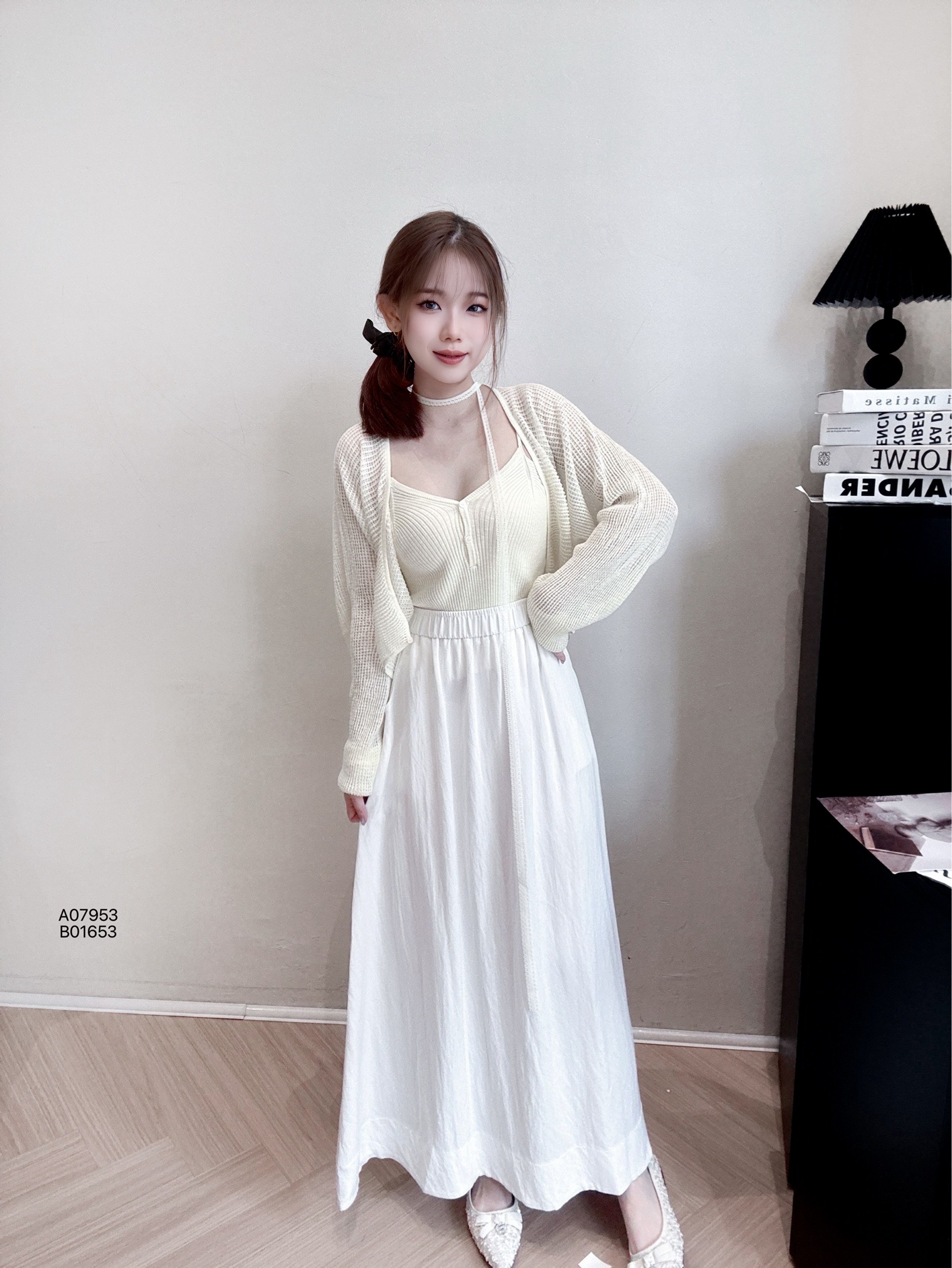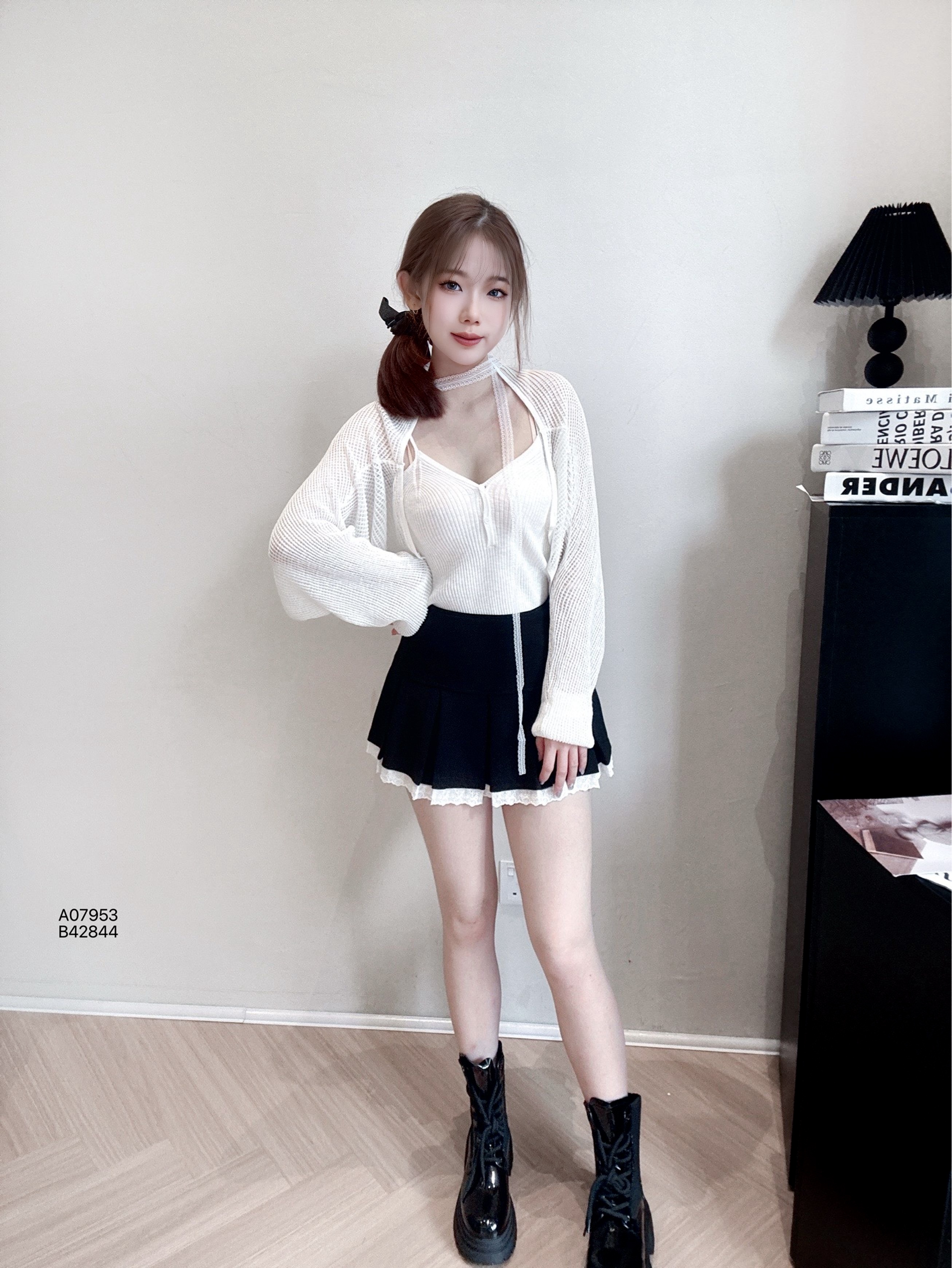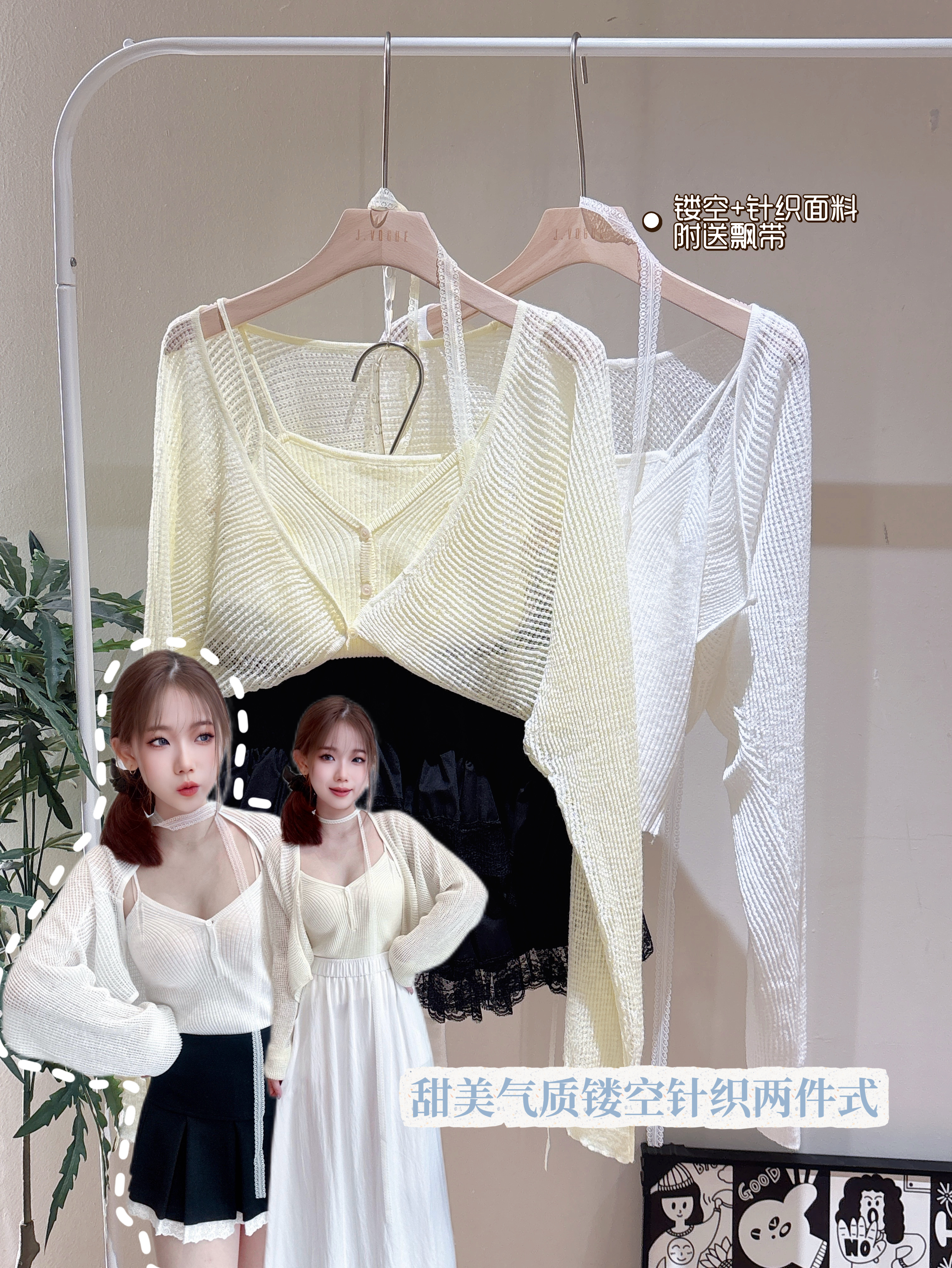 A07953夏季纯色针织飘带开衫两件套PRICE|RM69吊带:胸围60-80cm|长度33cm外套:胸围114cm|长度29cm