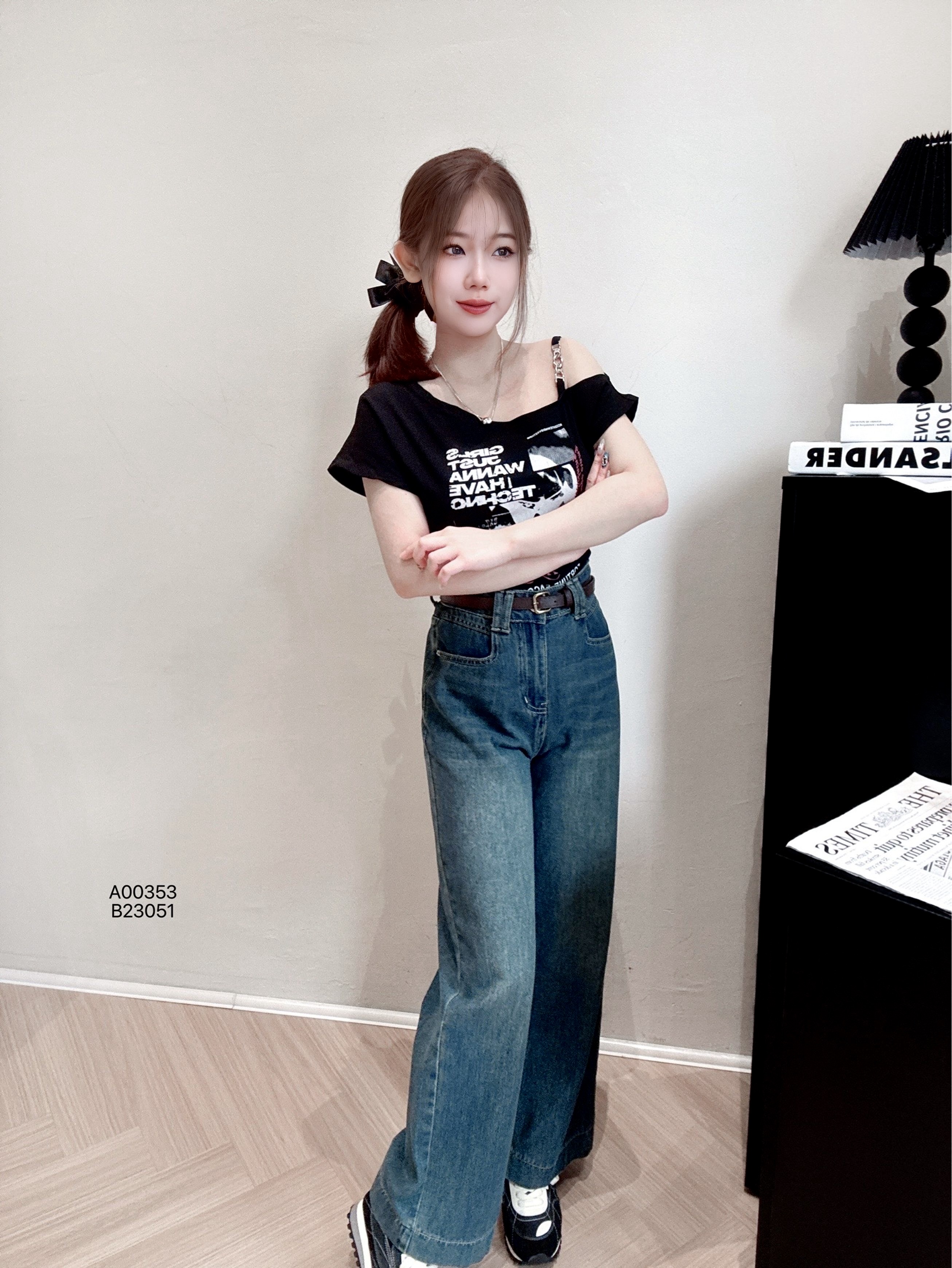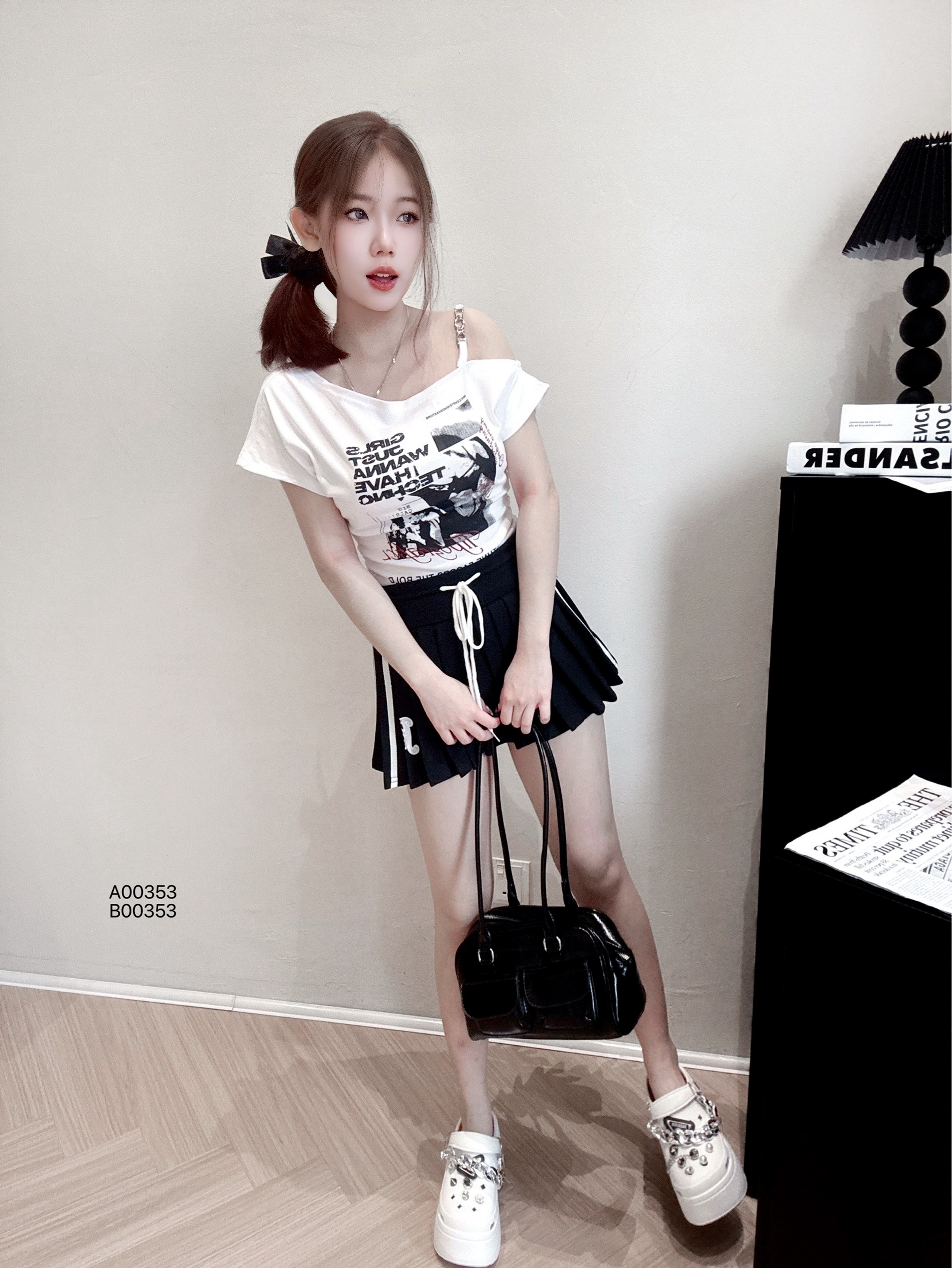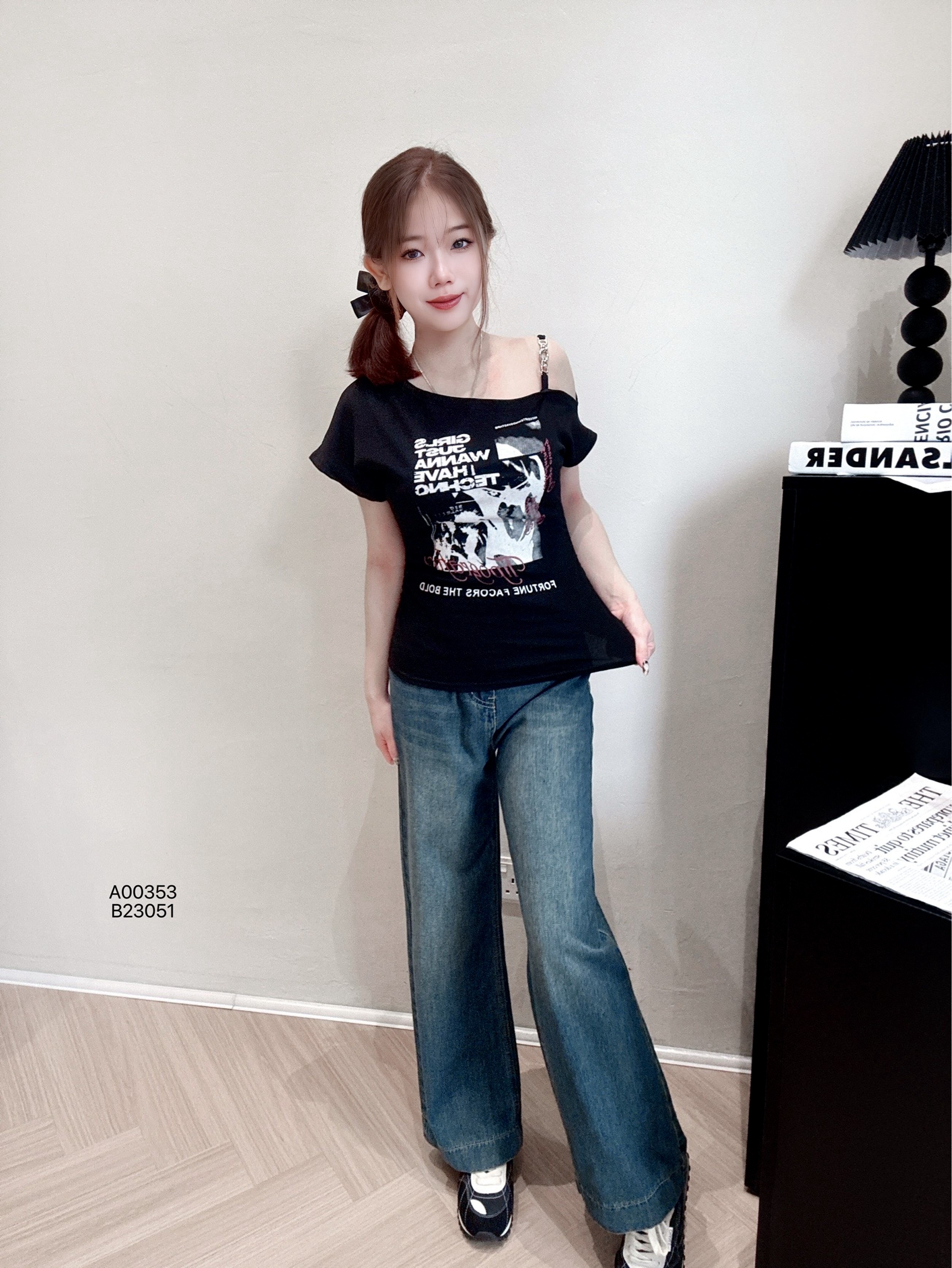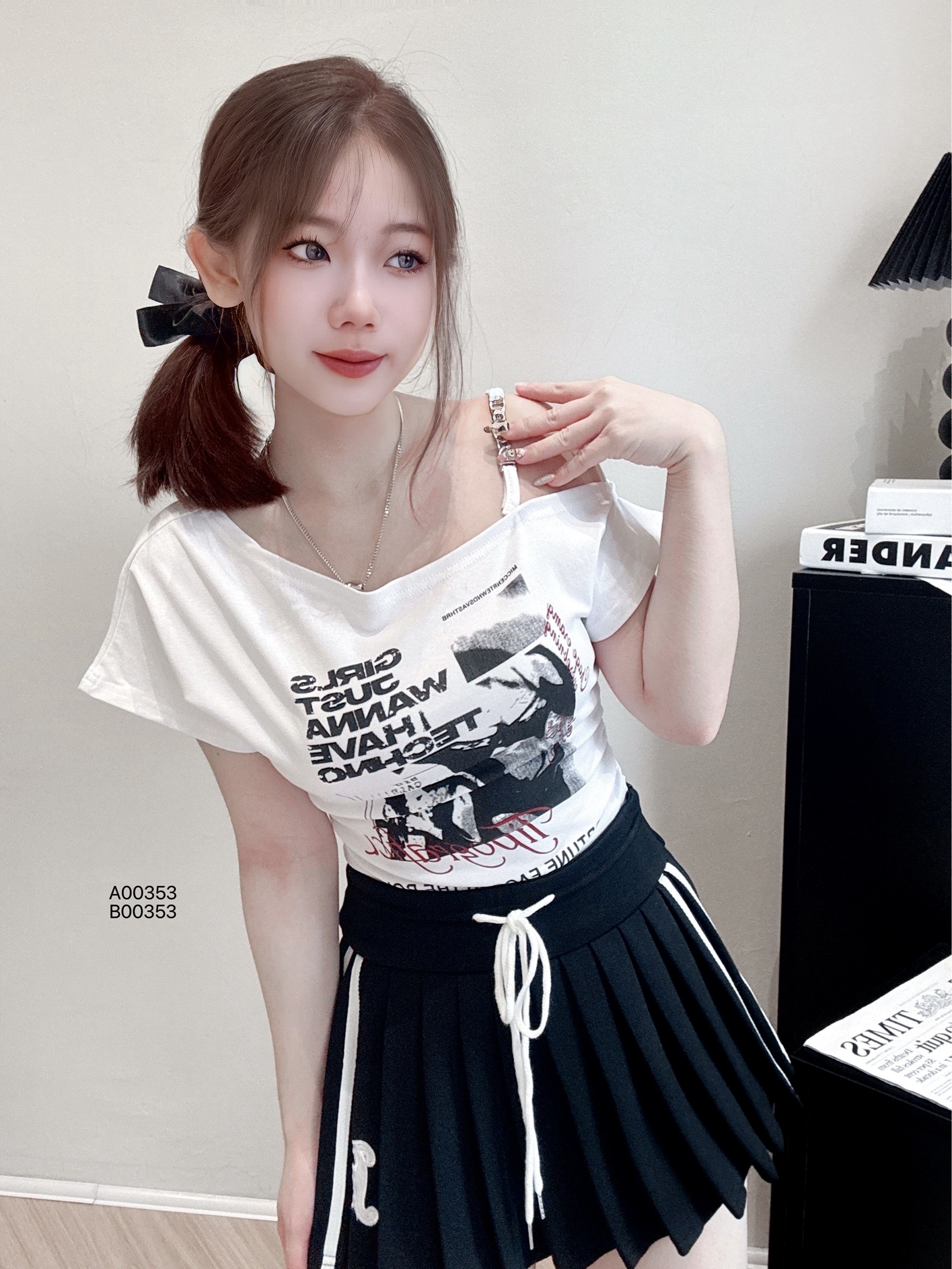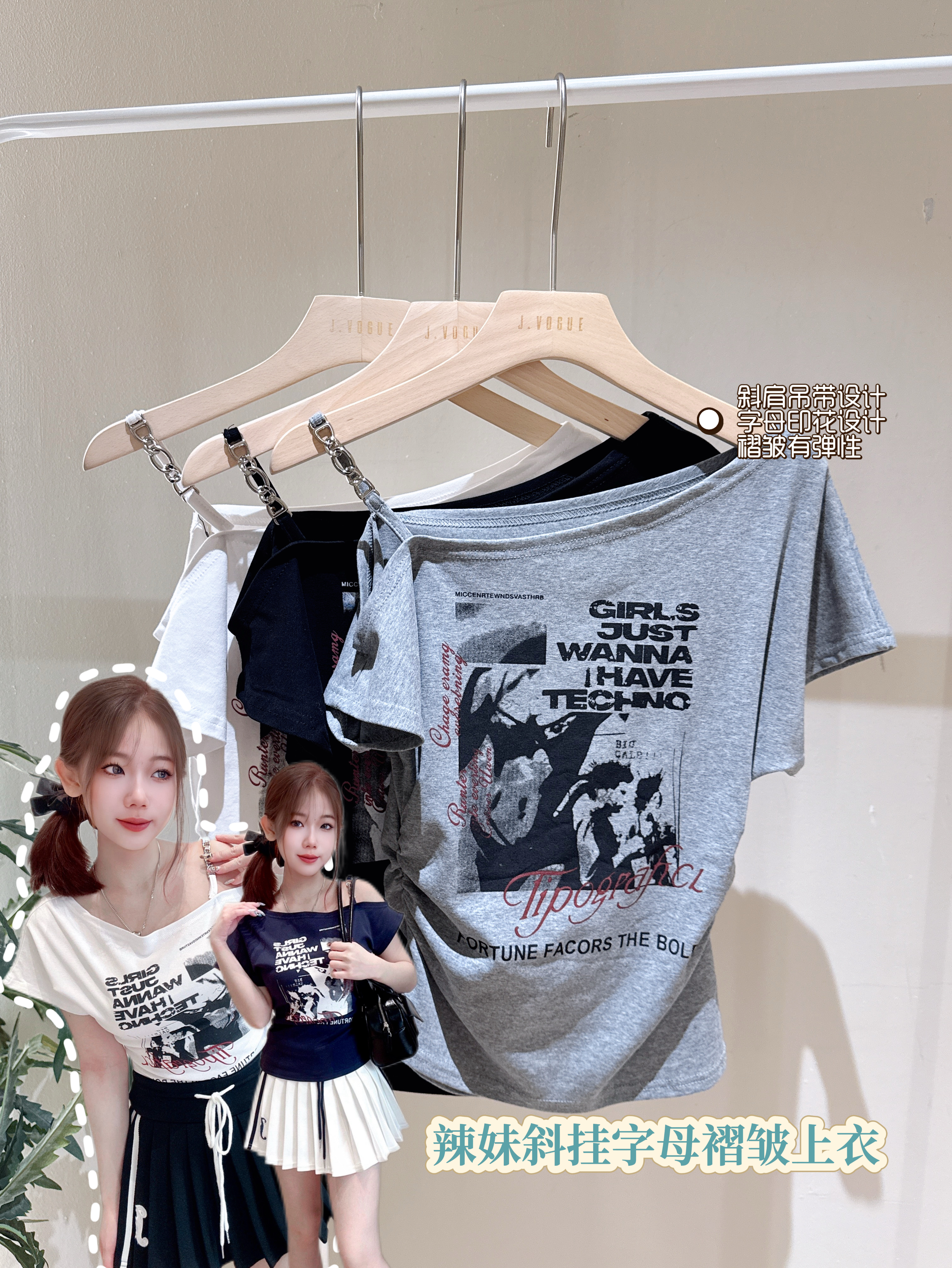 A00353辣妹字母印花斜肩修身T恤PRICE|RM32胸围92cm|长度45cm