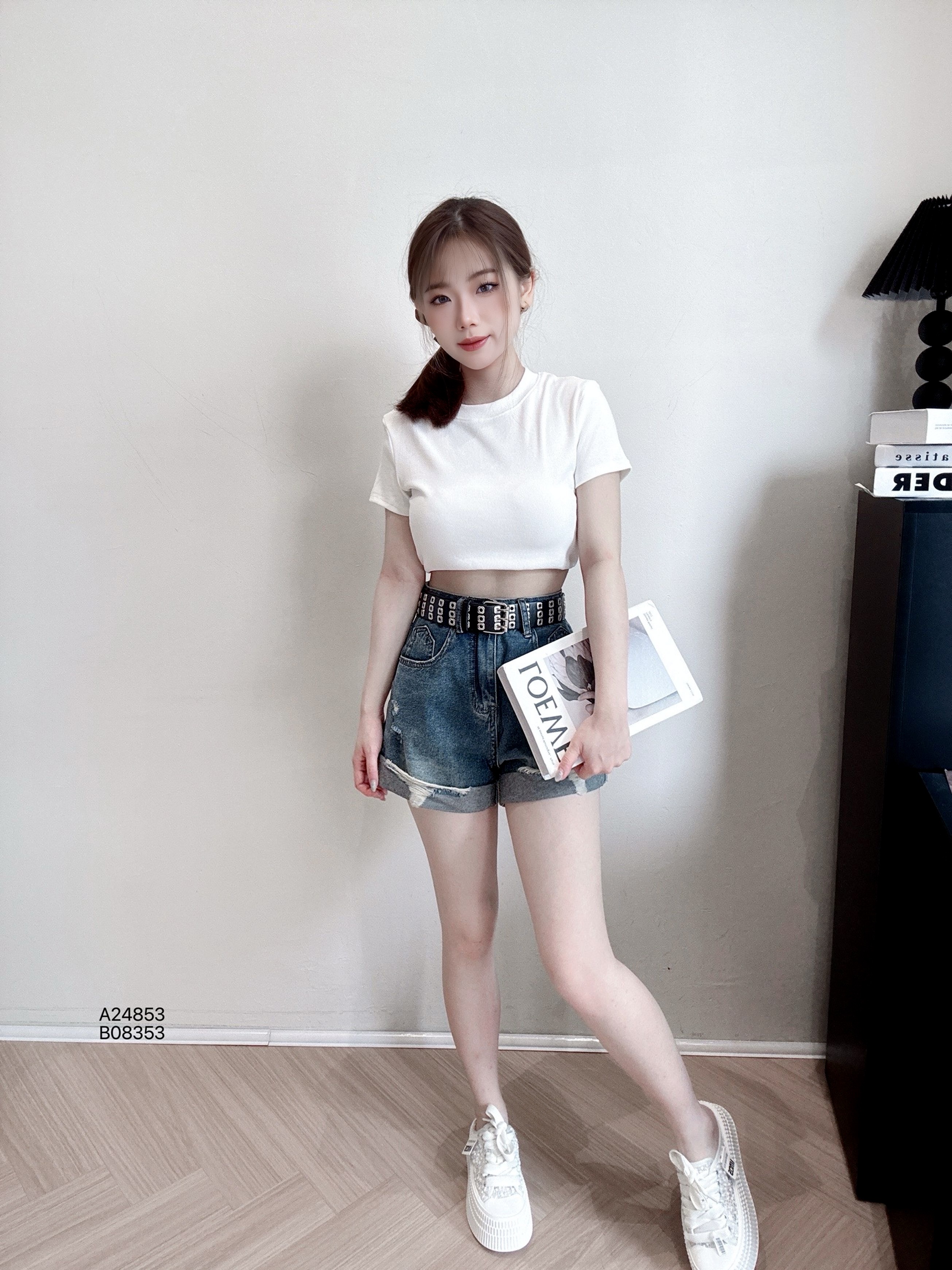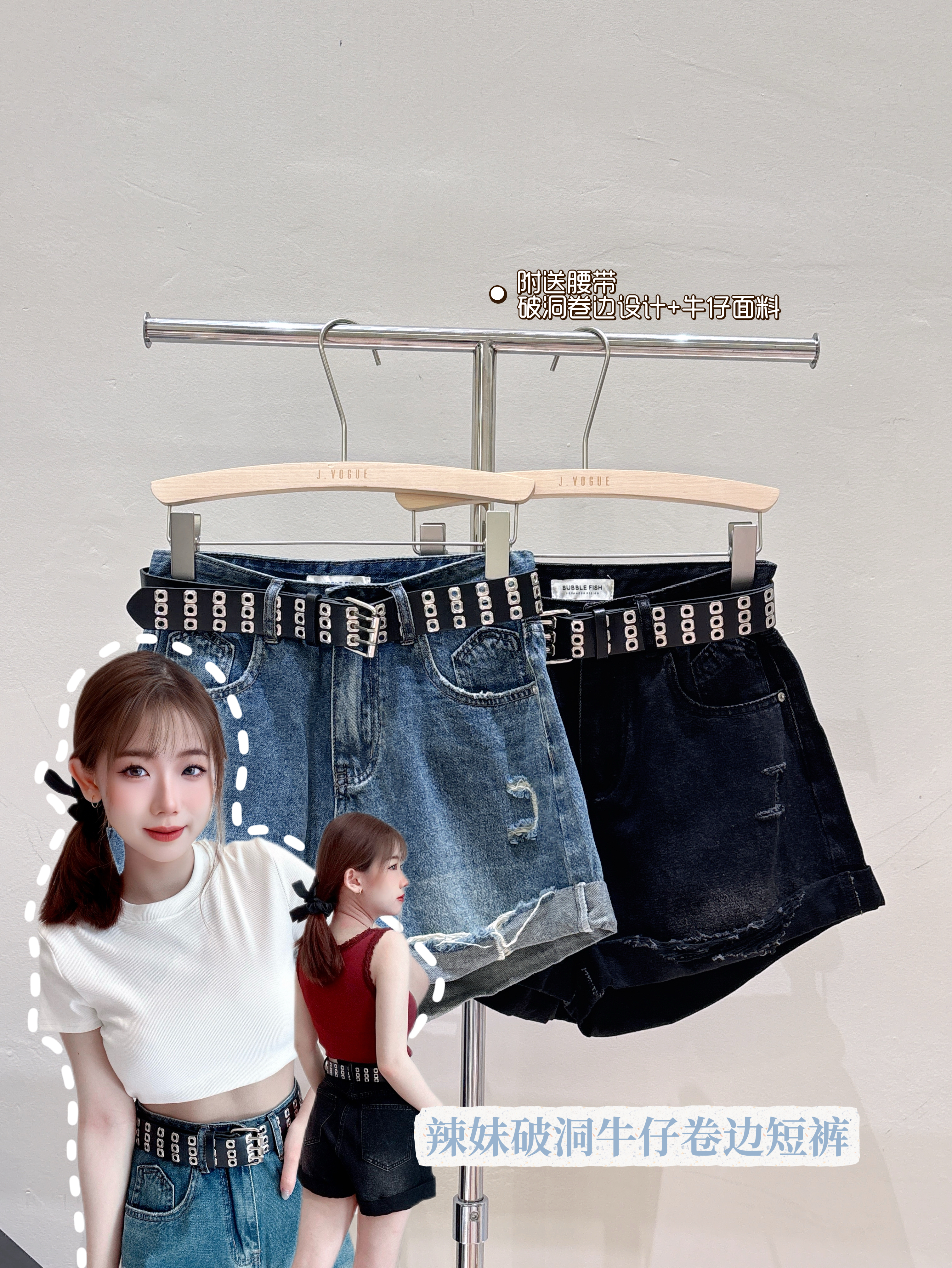 B08353欧美·复古磨破卷边牛仔短裤PRICE|RM75 S:腰围62cm|臀围96cm|长度34cm M:腰围68cm|臀围98cm|长度38cm L:腰围70cm|臀围100cm|长度38cm XL:腰围72cm|臀围104cm|长度39cm