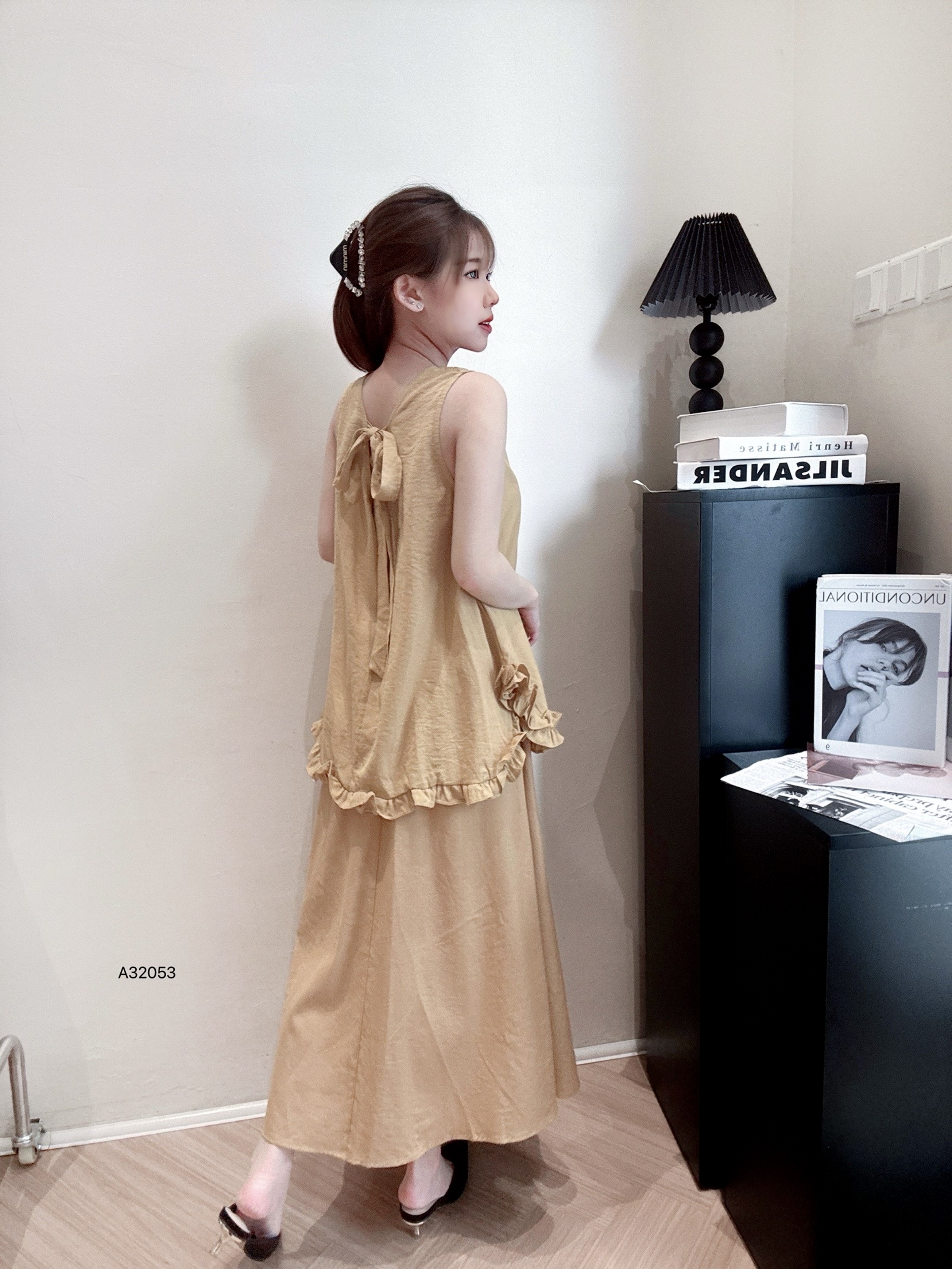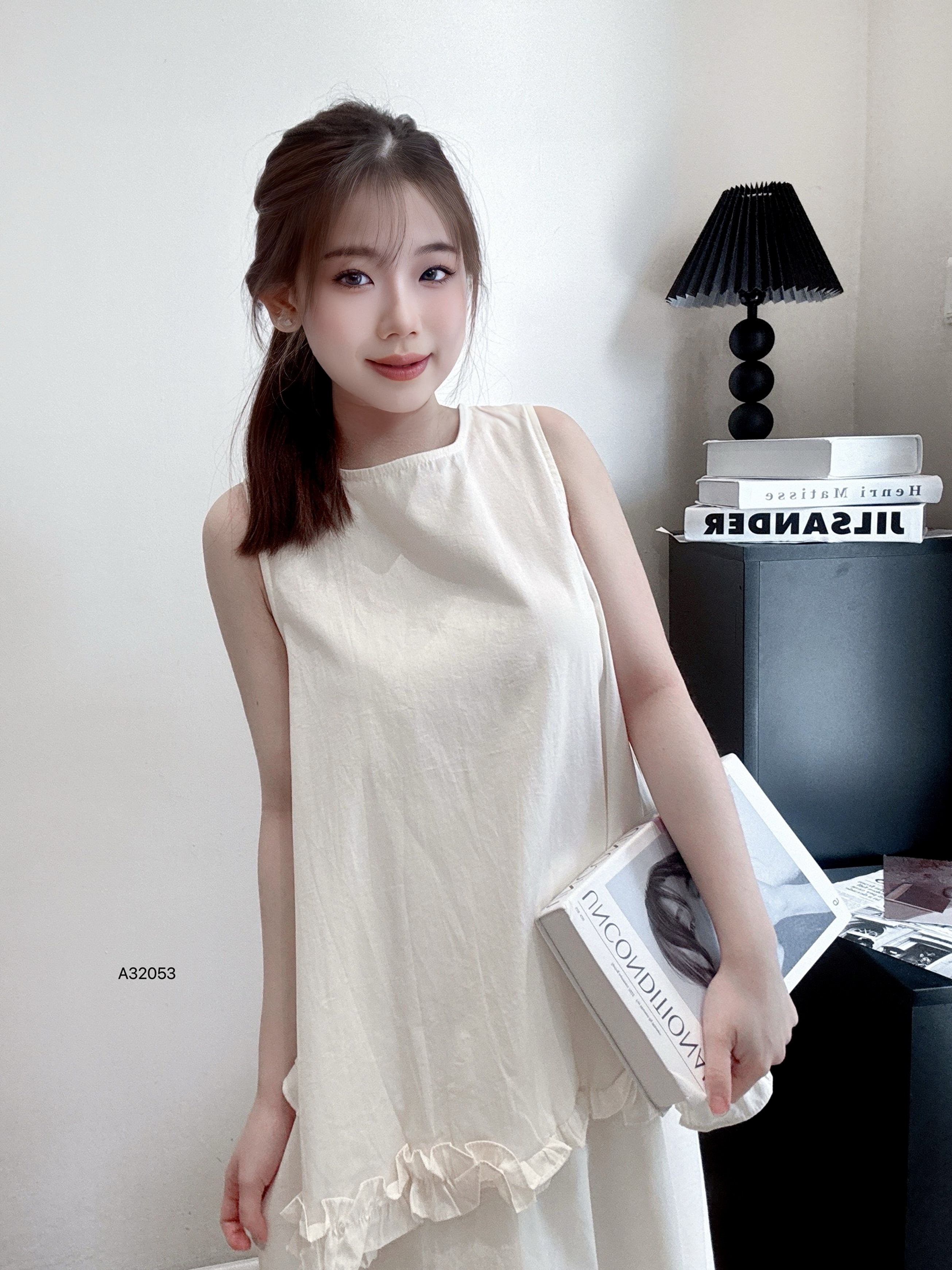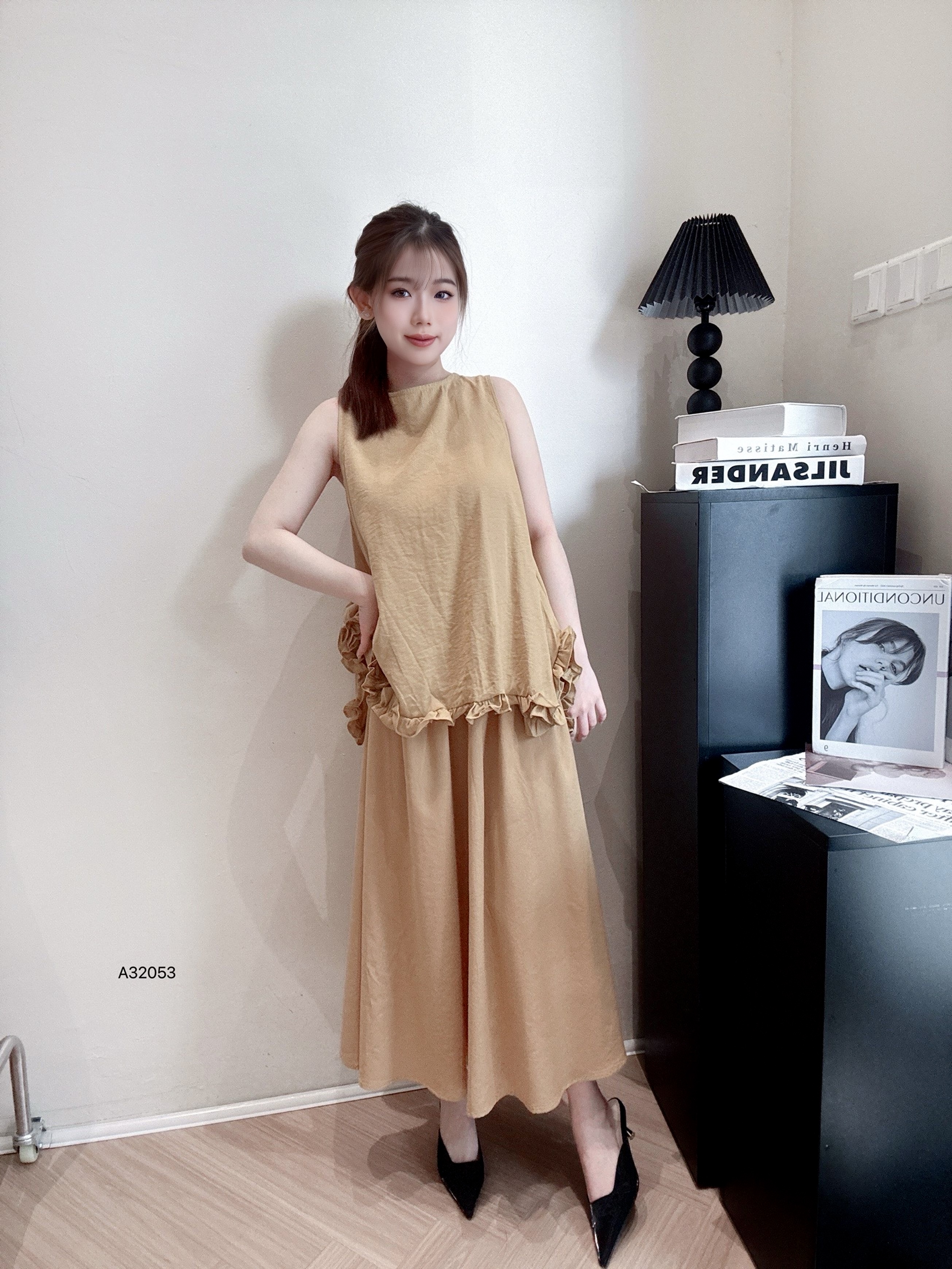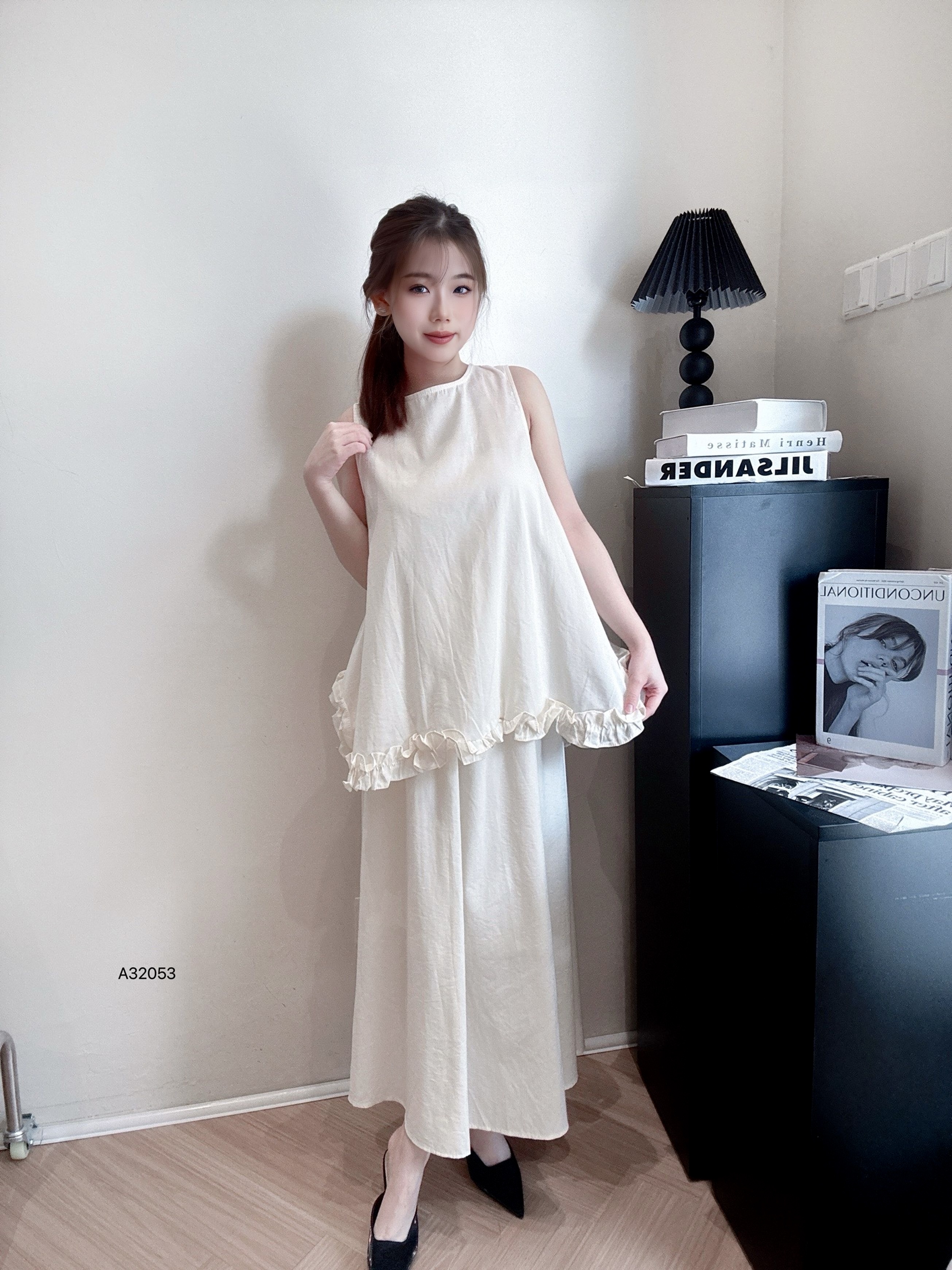 A32053法式气质木耳边棉麻套装PRICE|RM79上衣:胸围96-100cm|长度64cm裙子:腰围58-86cm|臀围104-112cm|长度80cm