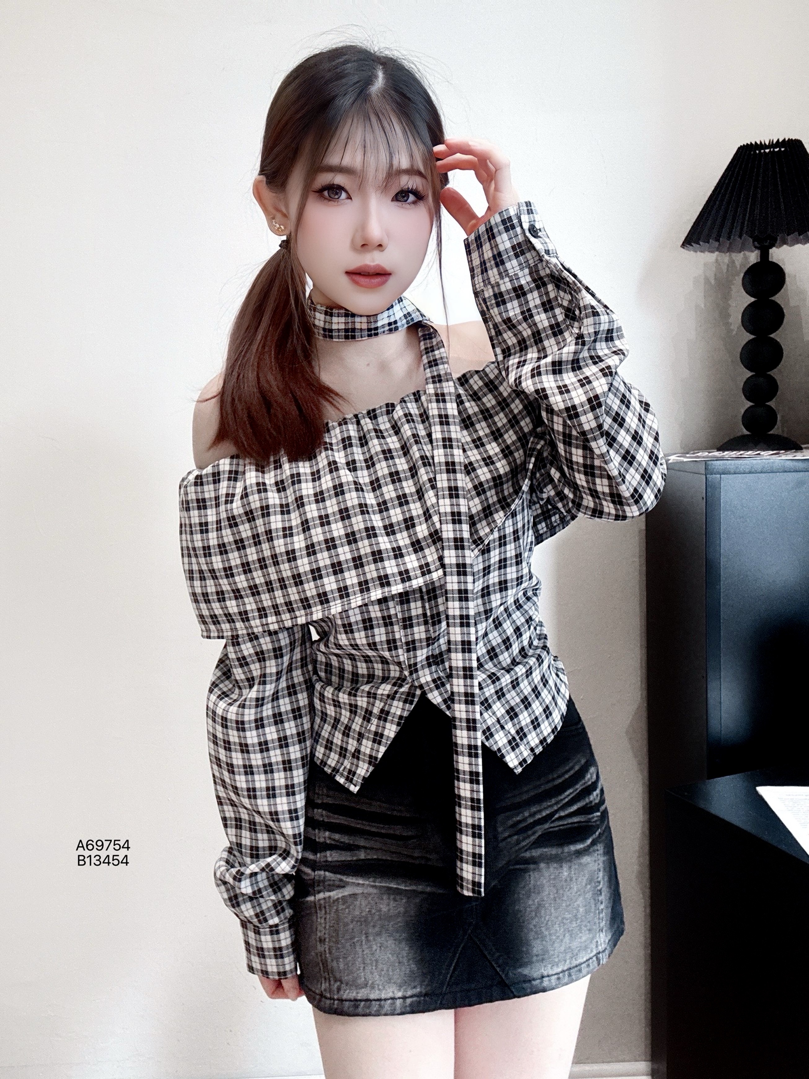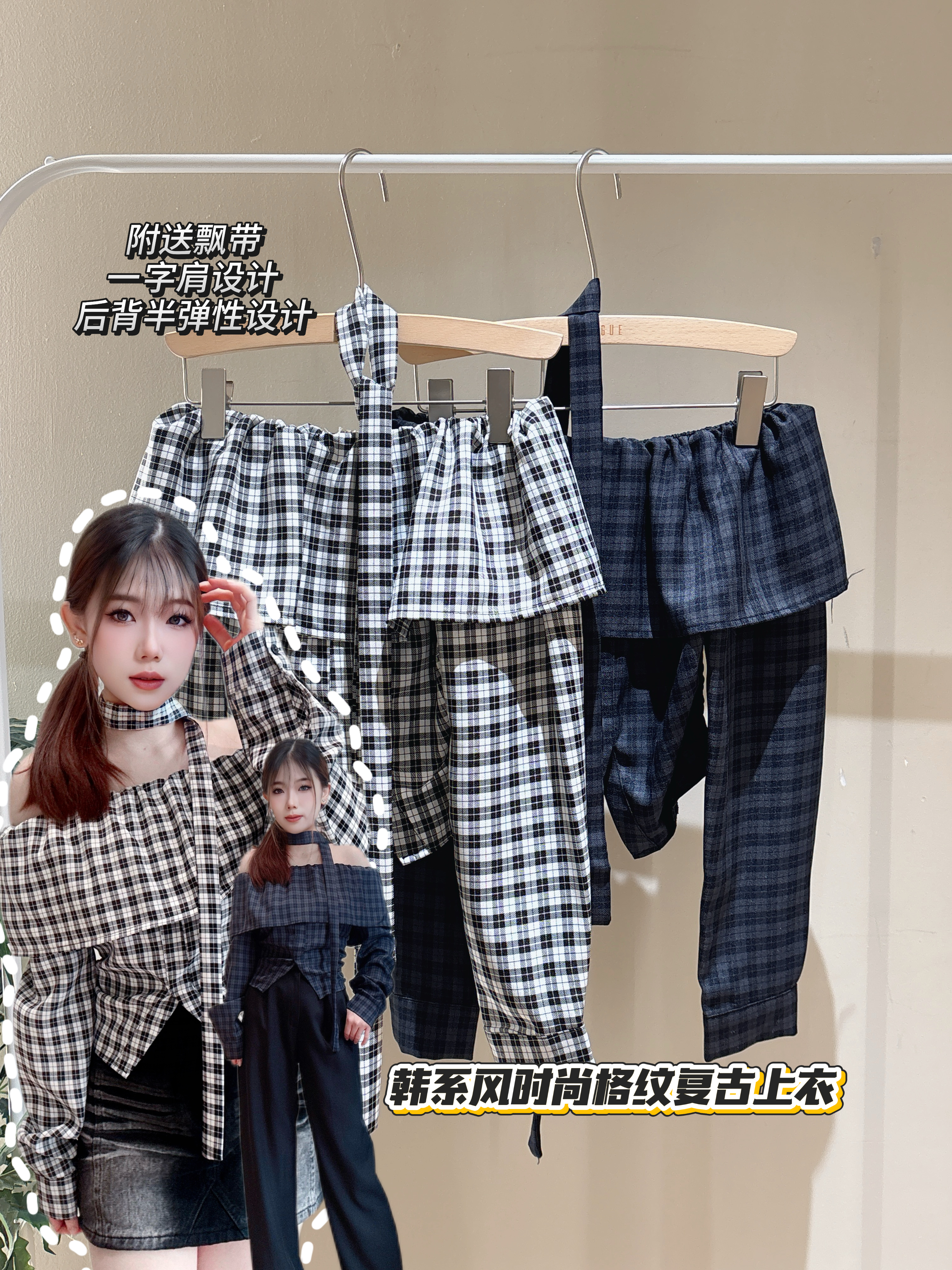 A69754韩系风时尚格纹复古上衣PRICE| RM55肩宽38cm|胸围66-88cm|长度38cm