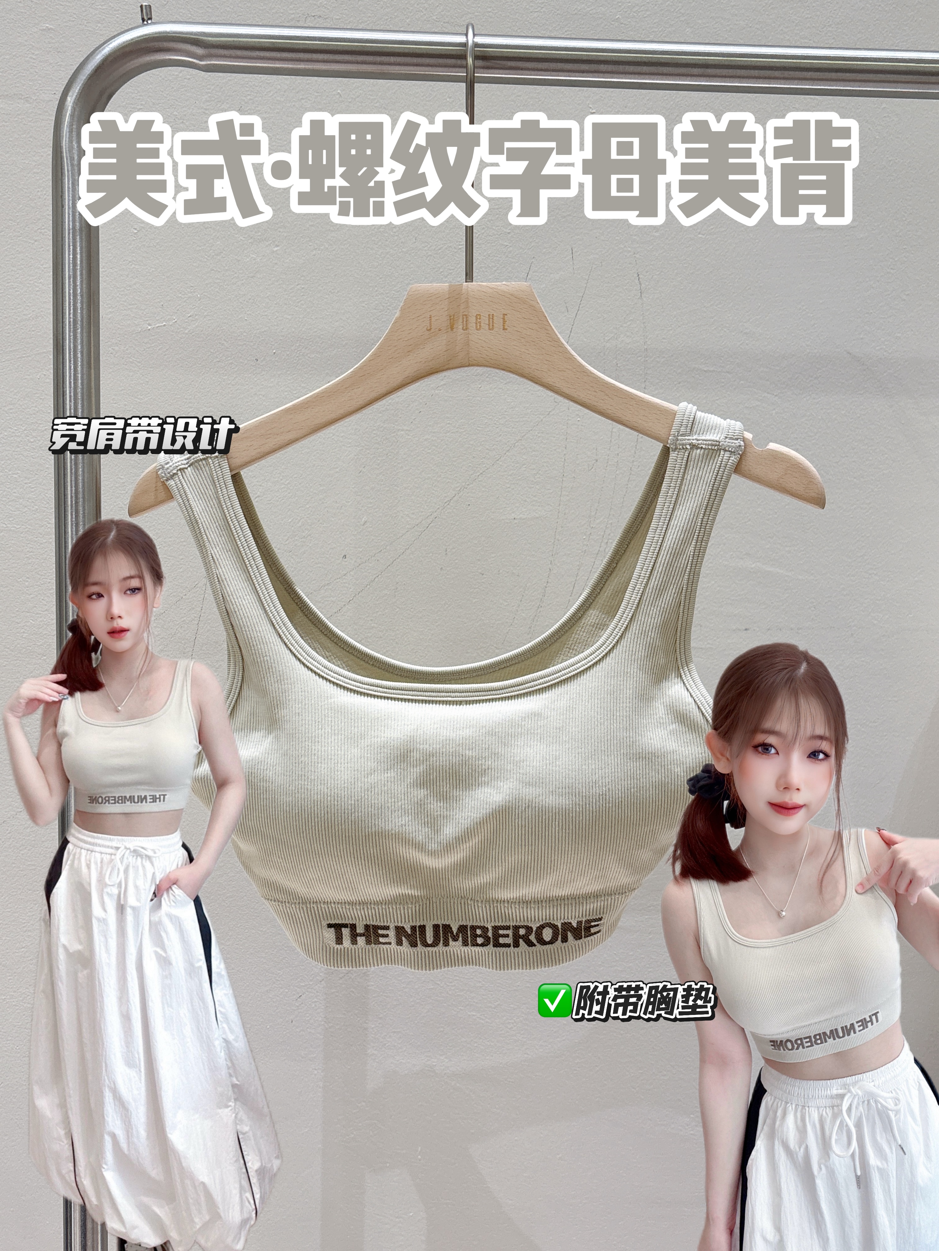 D01352美式感螺纹.字母美背PRICE|RM32胸围66-100CM|长度28CM
