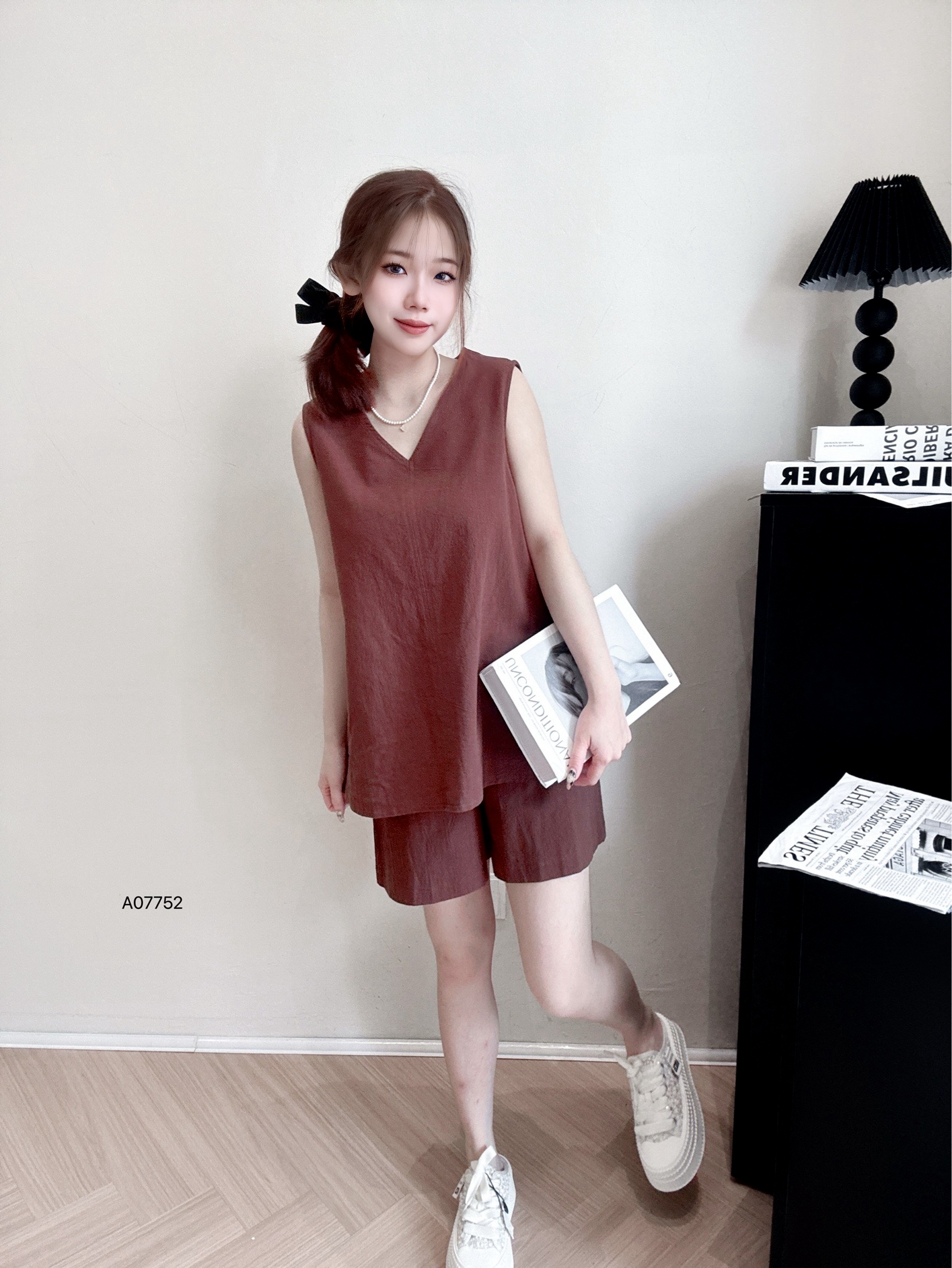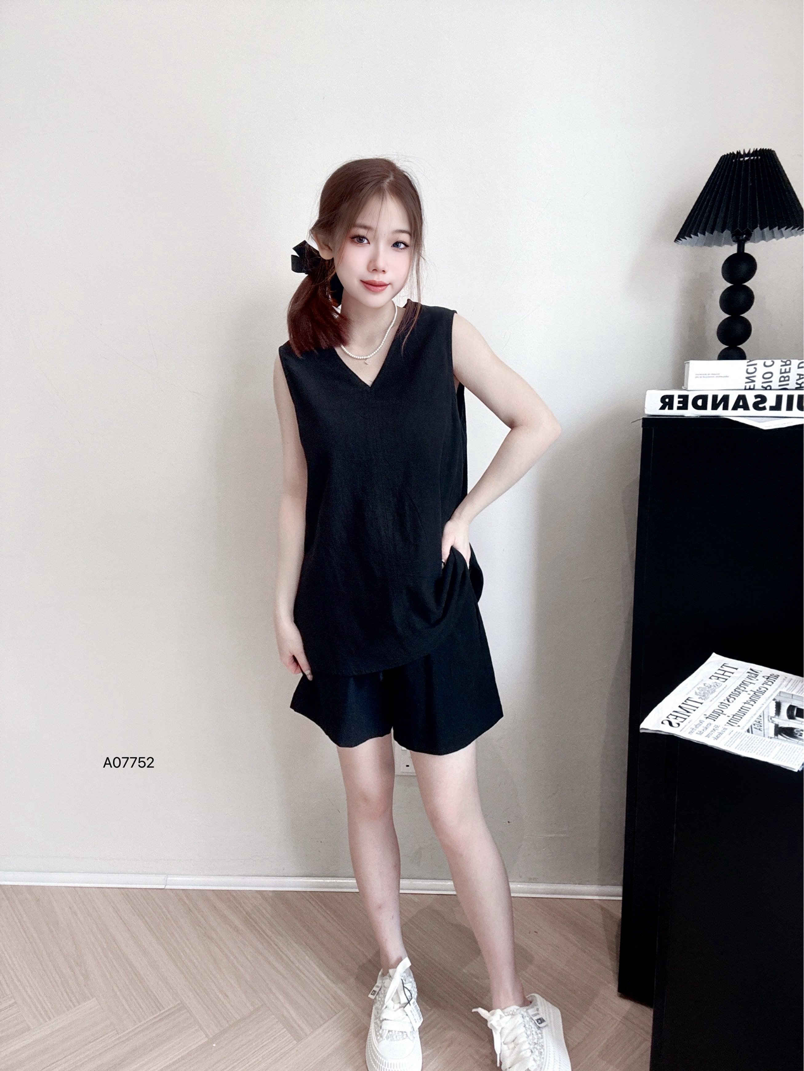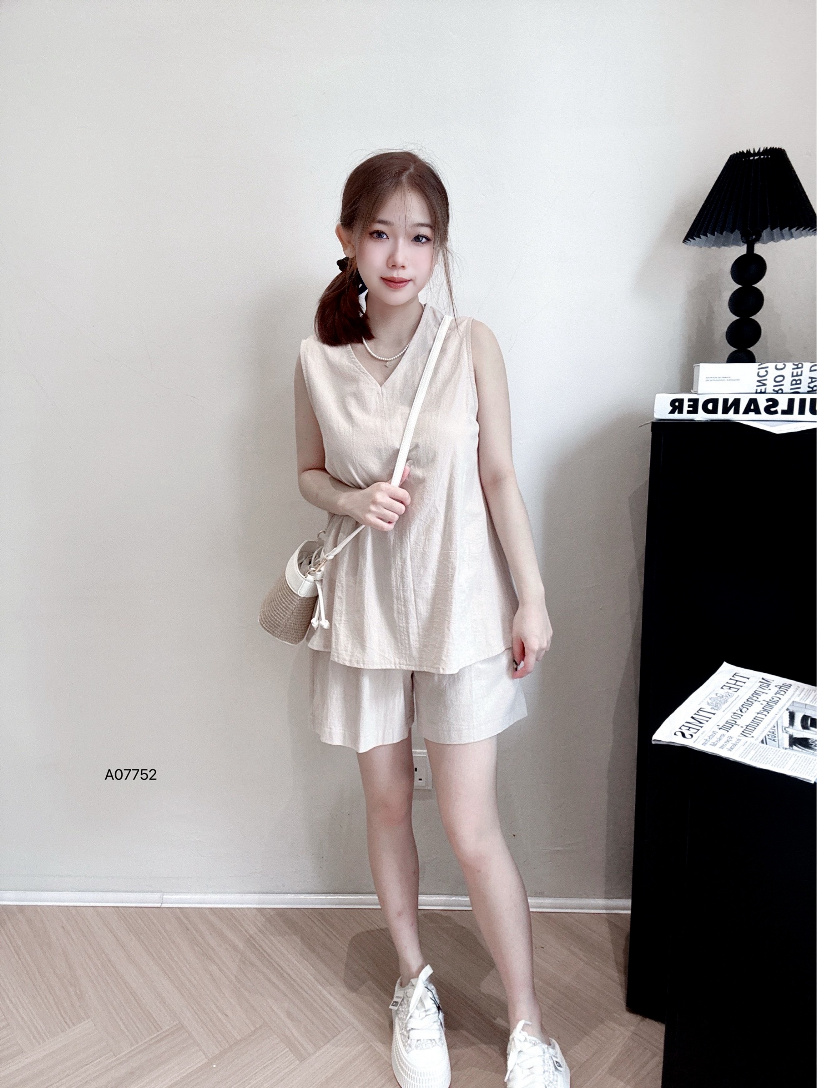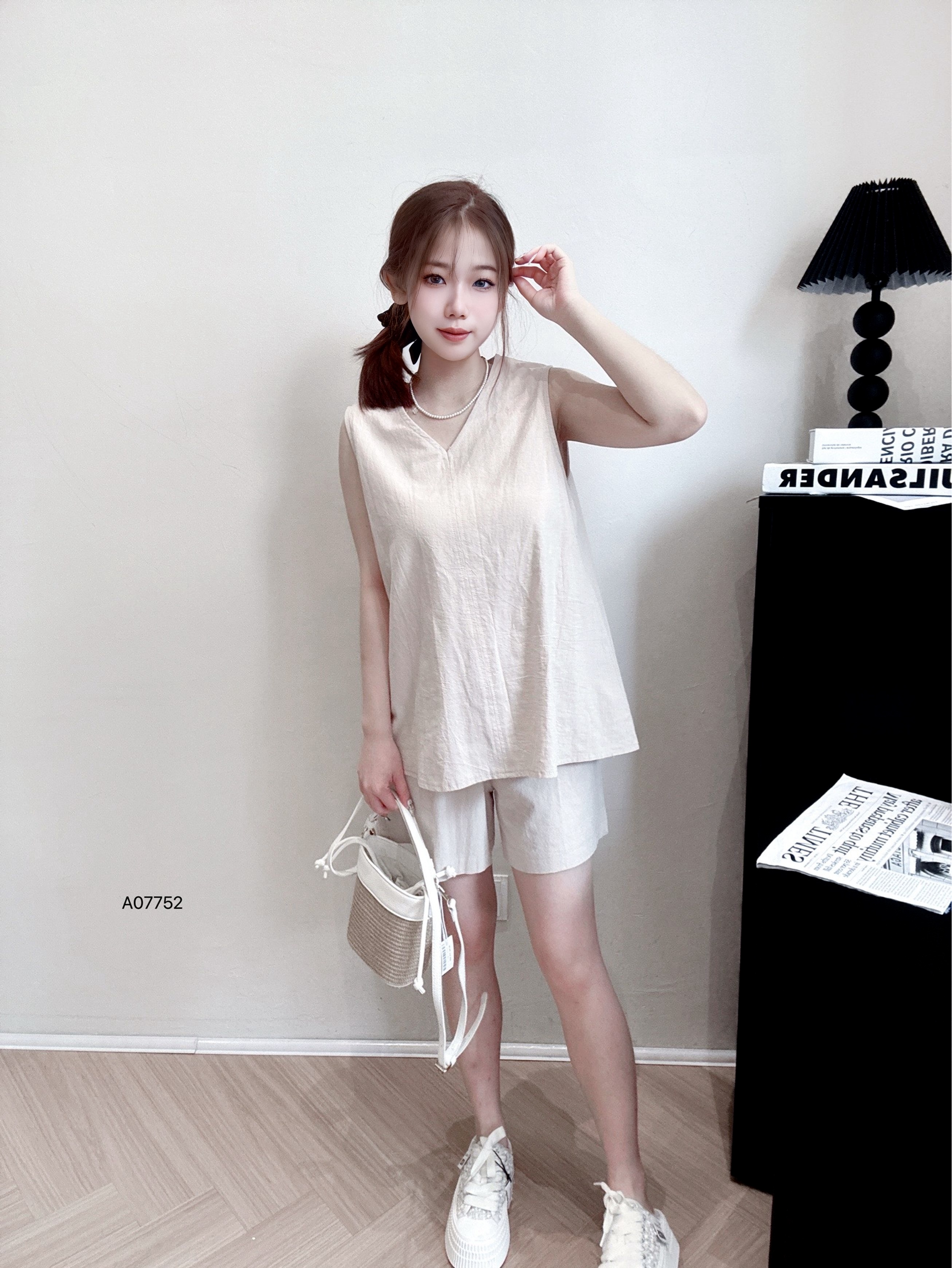 A07752慵懒高级棉麻V领套装PRICE|RM65上衣:肩宽34cm|胸围96cm|长度62cm裤子:腰围68-80cm|臀围102cm|长度43cm