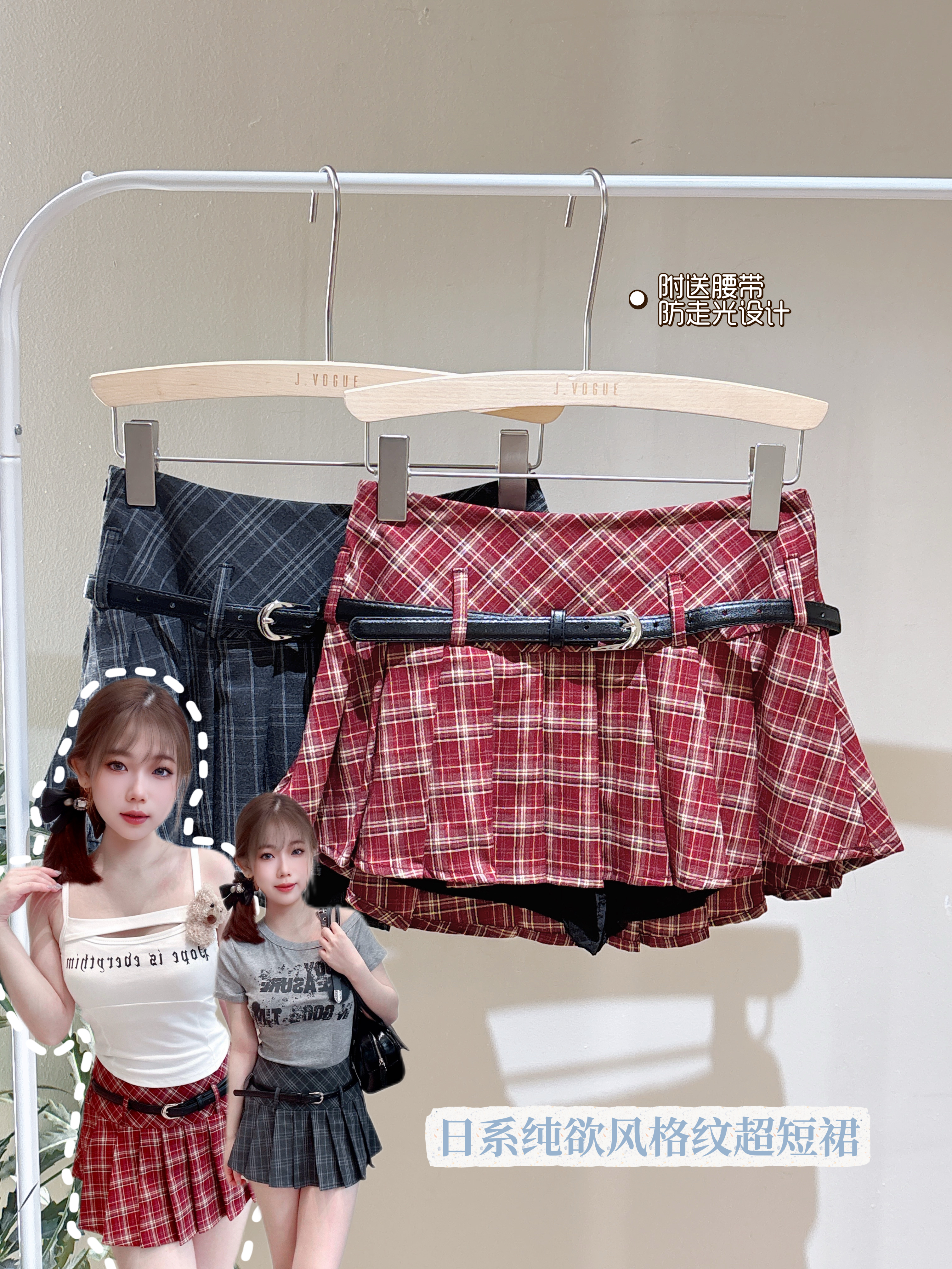 B04053学院风·复古格纹低腰百褶裙PRICE|RM49 S:腰围64cm|臀围90cm|长度31cm M:腰围70cm|臀围94cm|长度32cm L:腰围74cm|臀围96cm|长度34cm