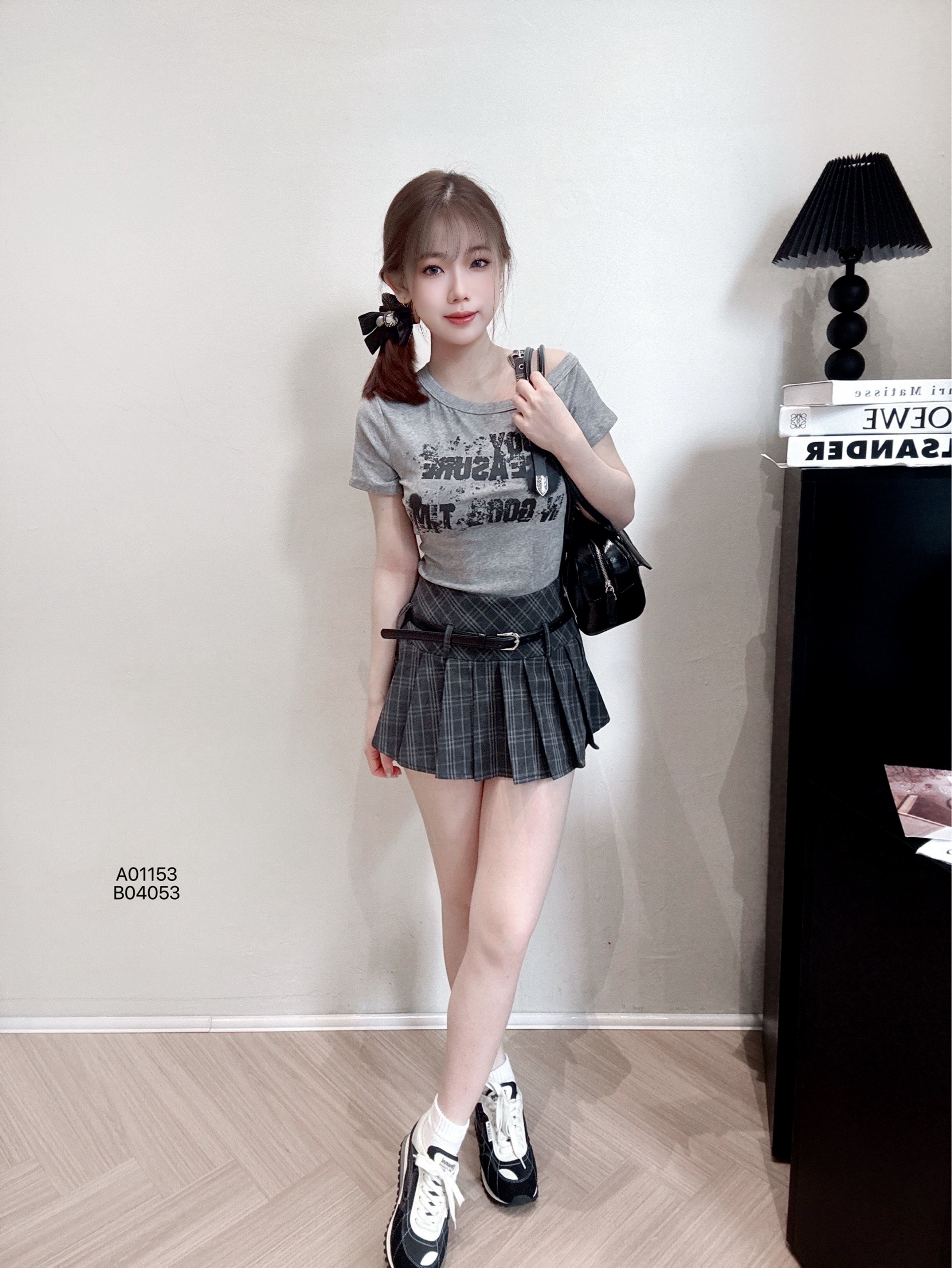 夏季 • 宽松字母印花短袖T恤+高腰百褶裙 RM 65.00