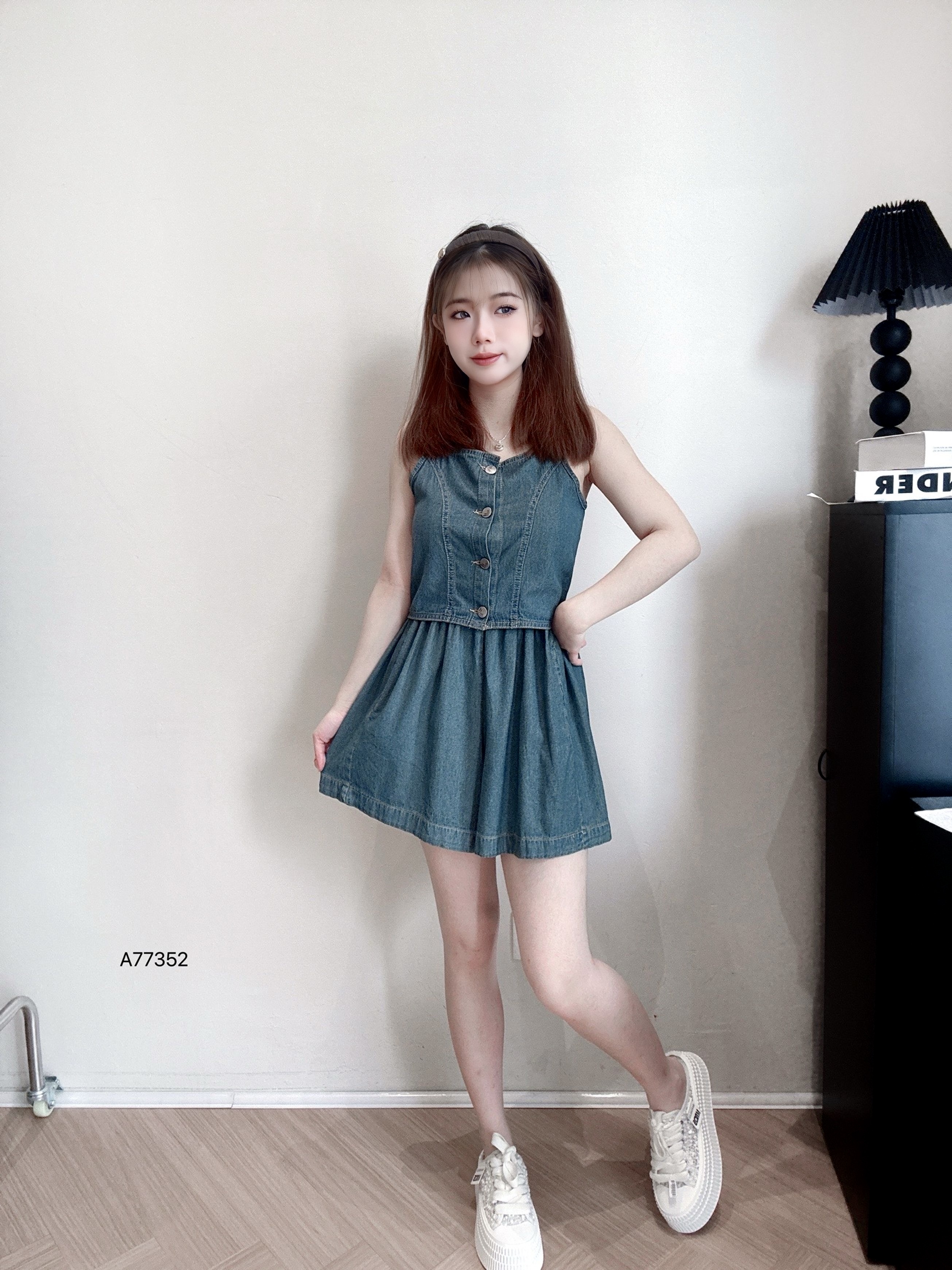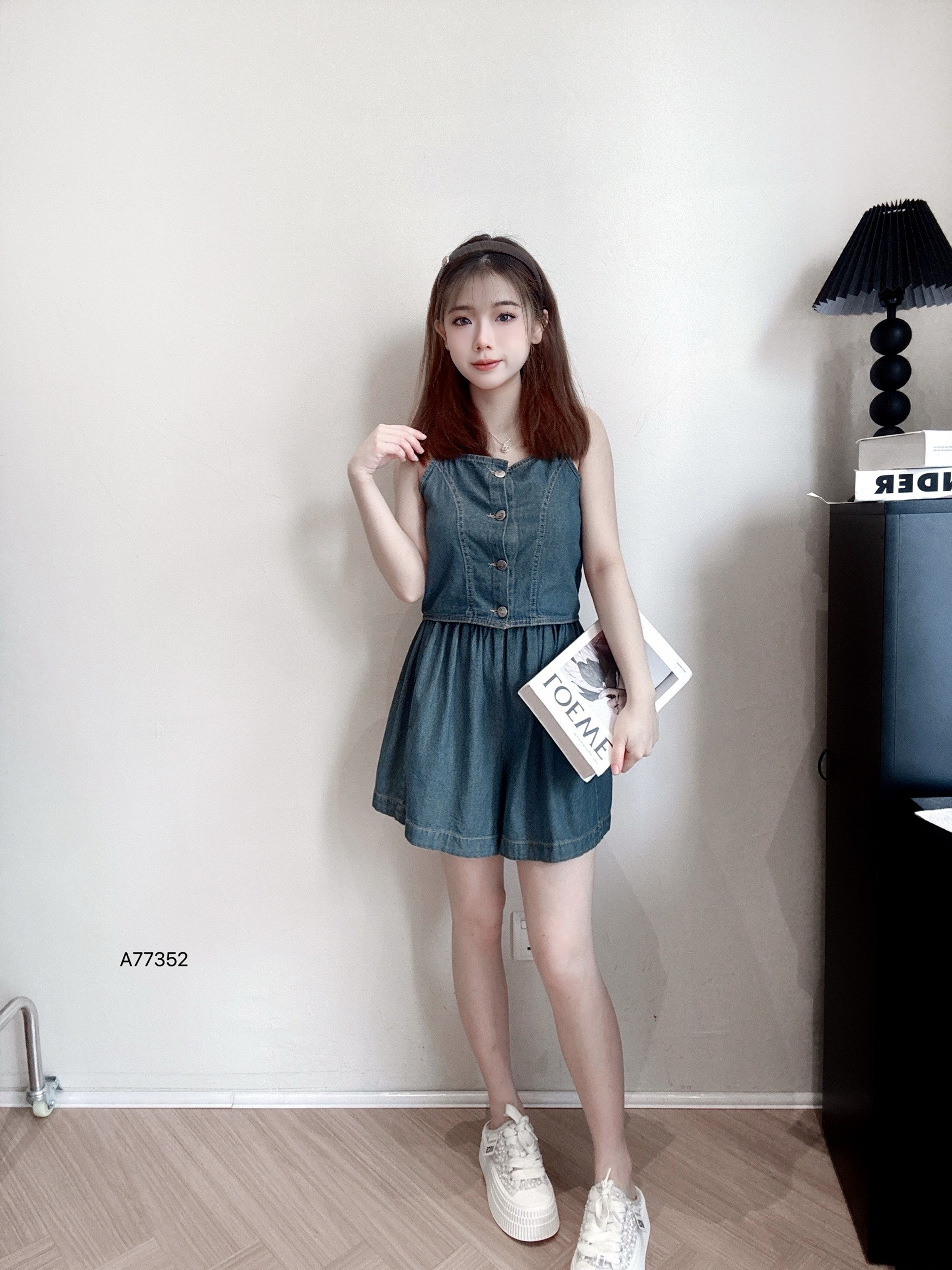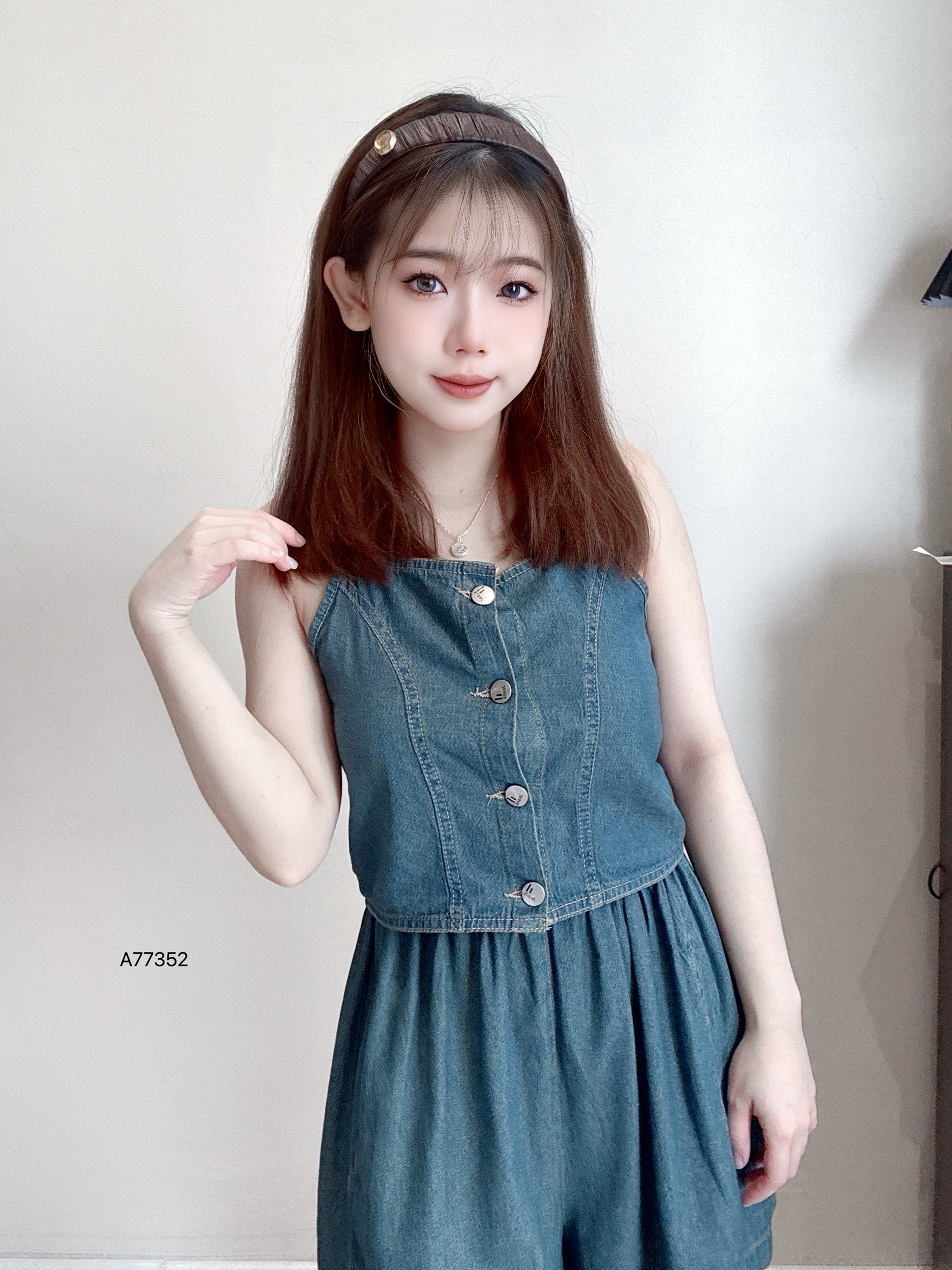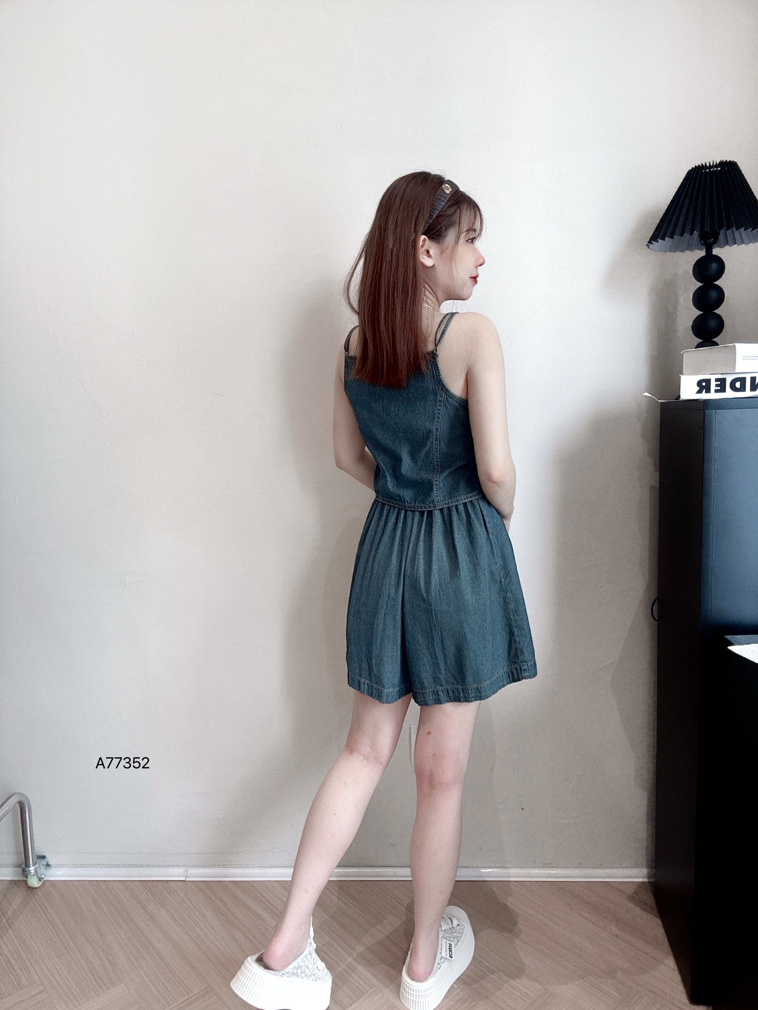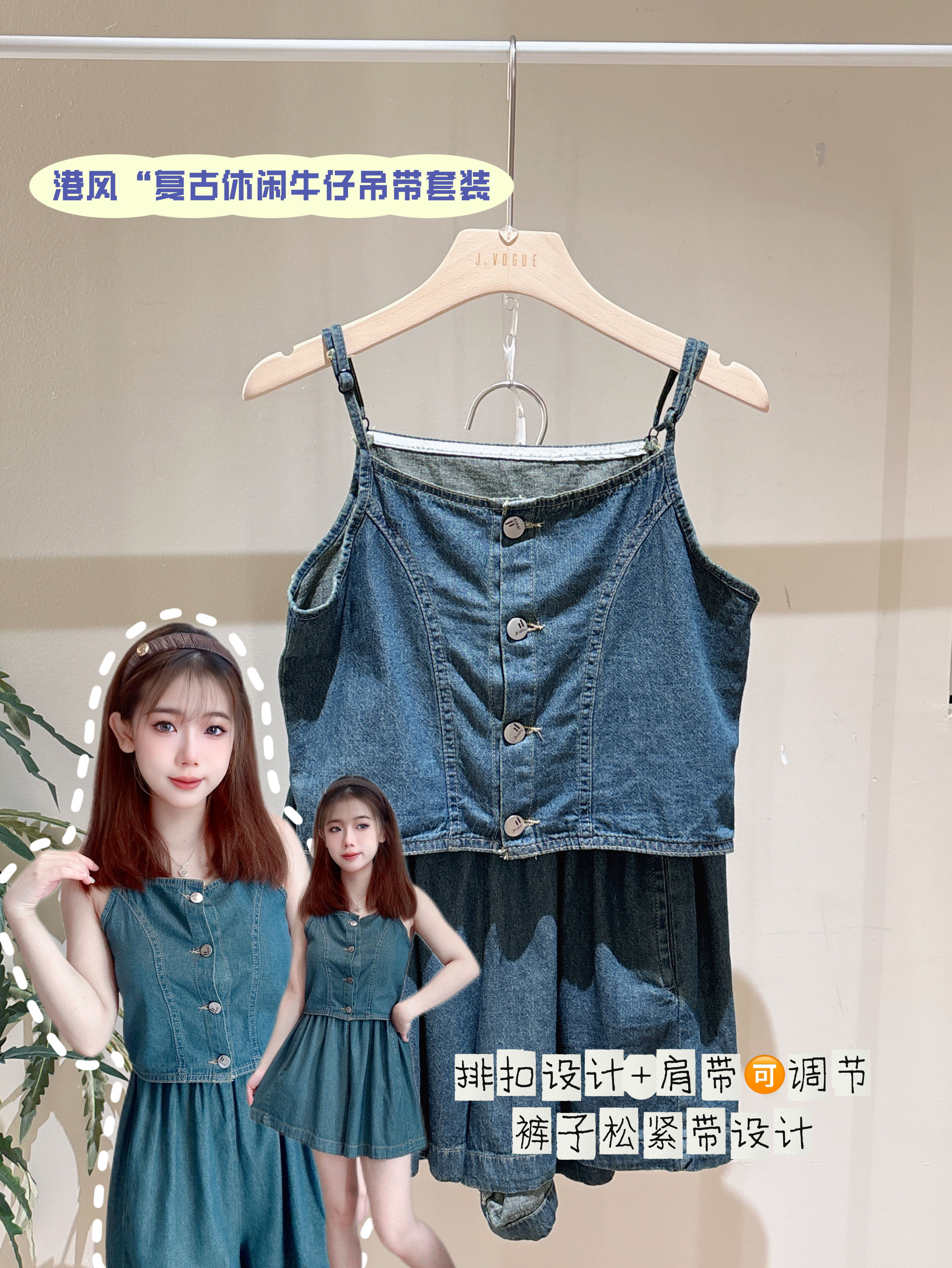 A77352夏季ins风牛仔吊带.套装PRICE|RM75上衣:胸围78-96CM|长度31CM【肩带可调节】裤子:腰围60-80CM|臀围94-102CM长度42CM