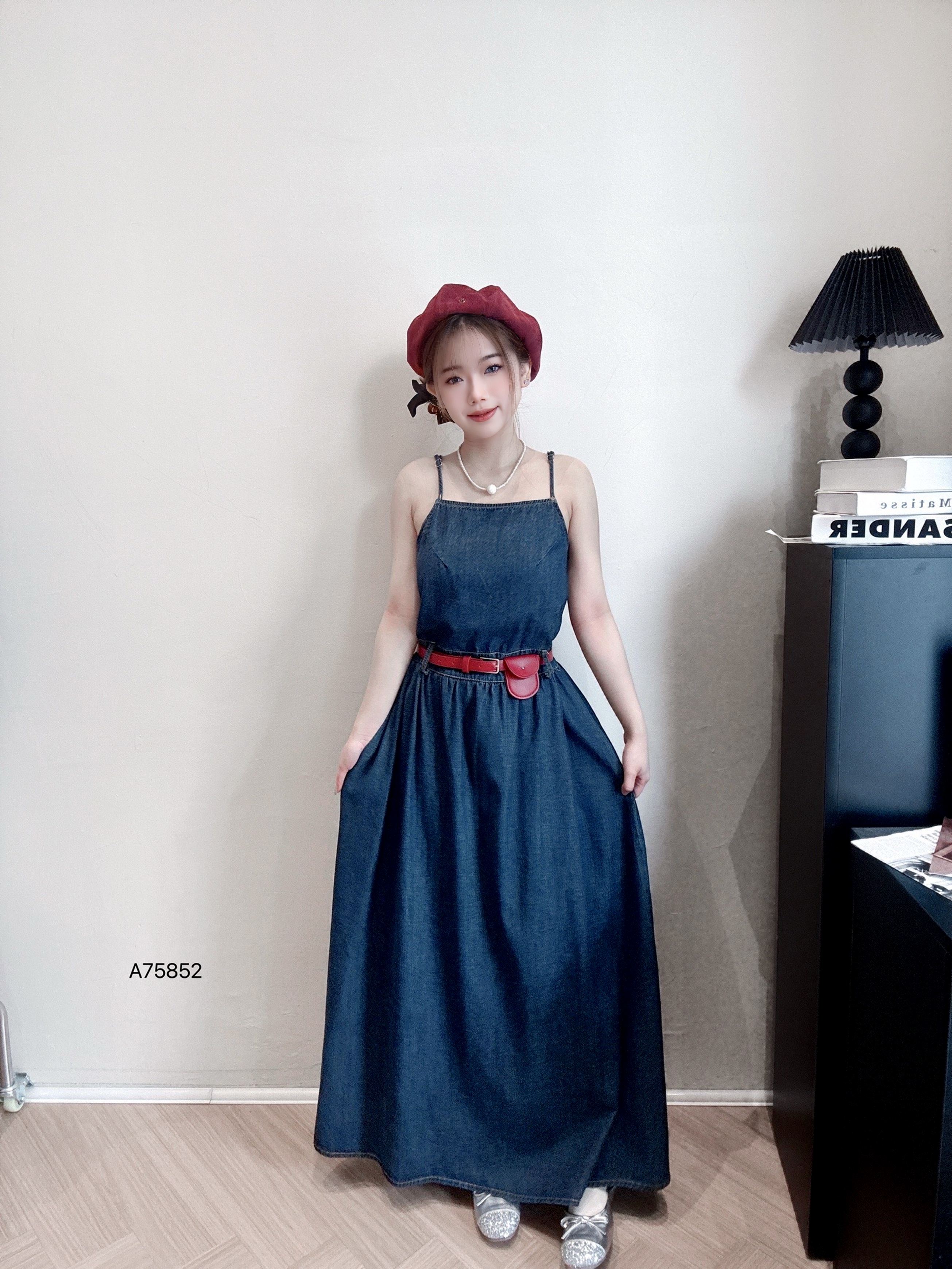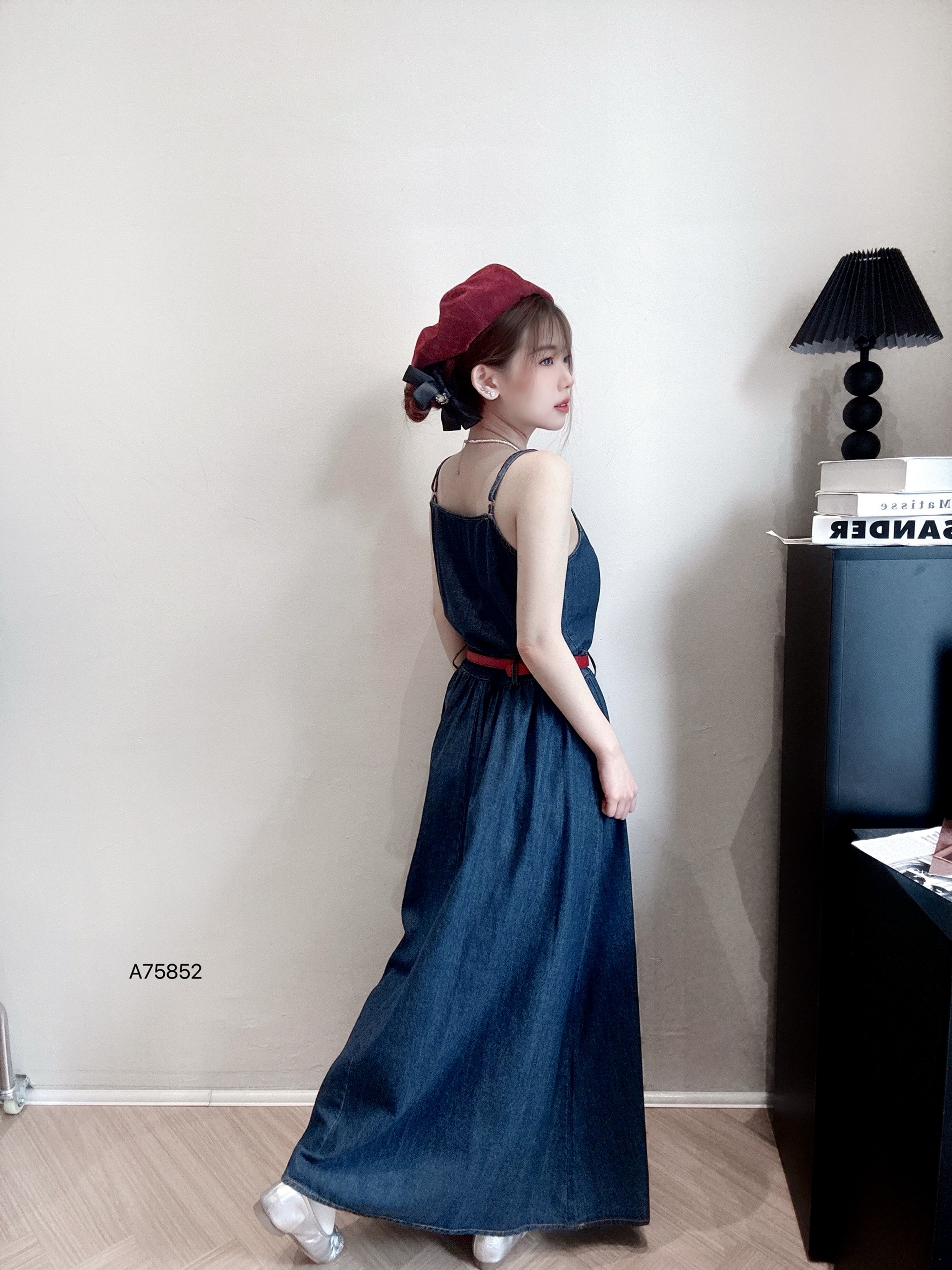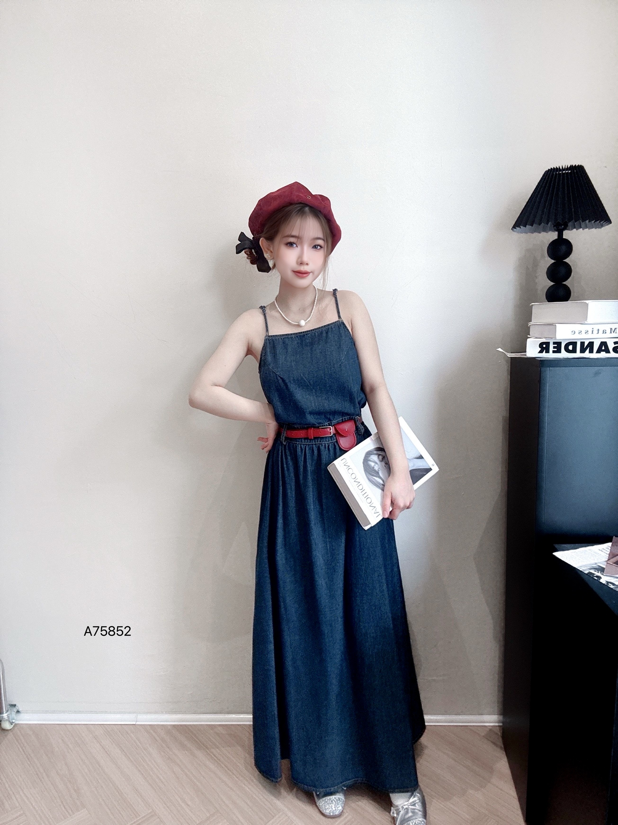 A75852“港风吊带”牛仔连身裙【包括腰带】PRICE|RM79M:胸围80-94CM|腰围66-70CM臀围94-100CM|长度109CM【肩带可调节】L:胸围84-96CM|腰围72-76CM臀围96-106CM|长度109CM