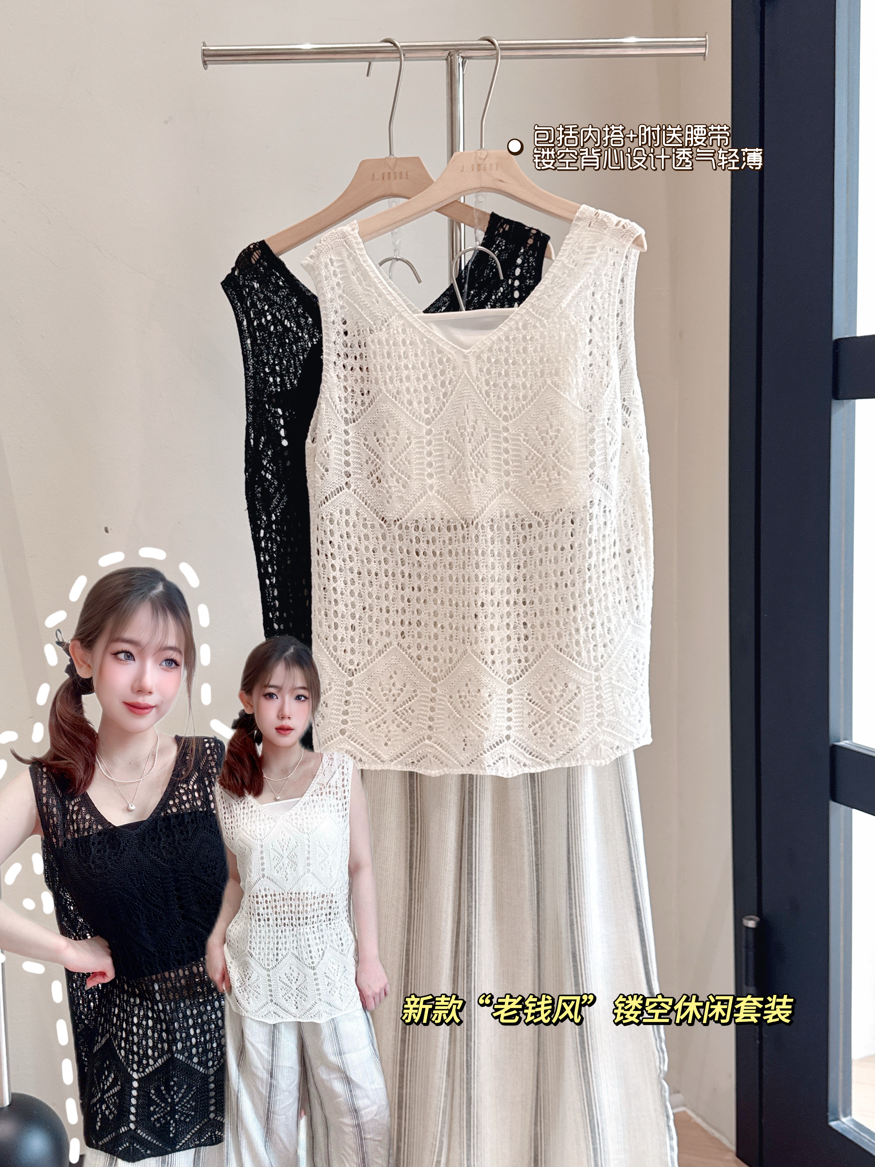 A18153松弛度假“老钱风”3件套 【包括腰带】PRICE|RM109M⬇️背心:胸围62-92CM|长度34CM镂空:胸围100-110CM|长度60CM裤:腰围66-68CM|臀围94-98CM长度100CML⬇️背心:胸围62-92CM|长度34CM镂空:胸围100-110CM|长度60CM裤:腰围68-72CM|臀围96-103CM长度100CM ...Read more