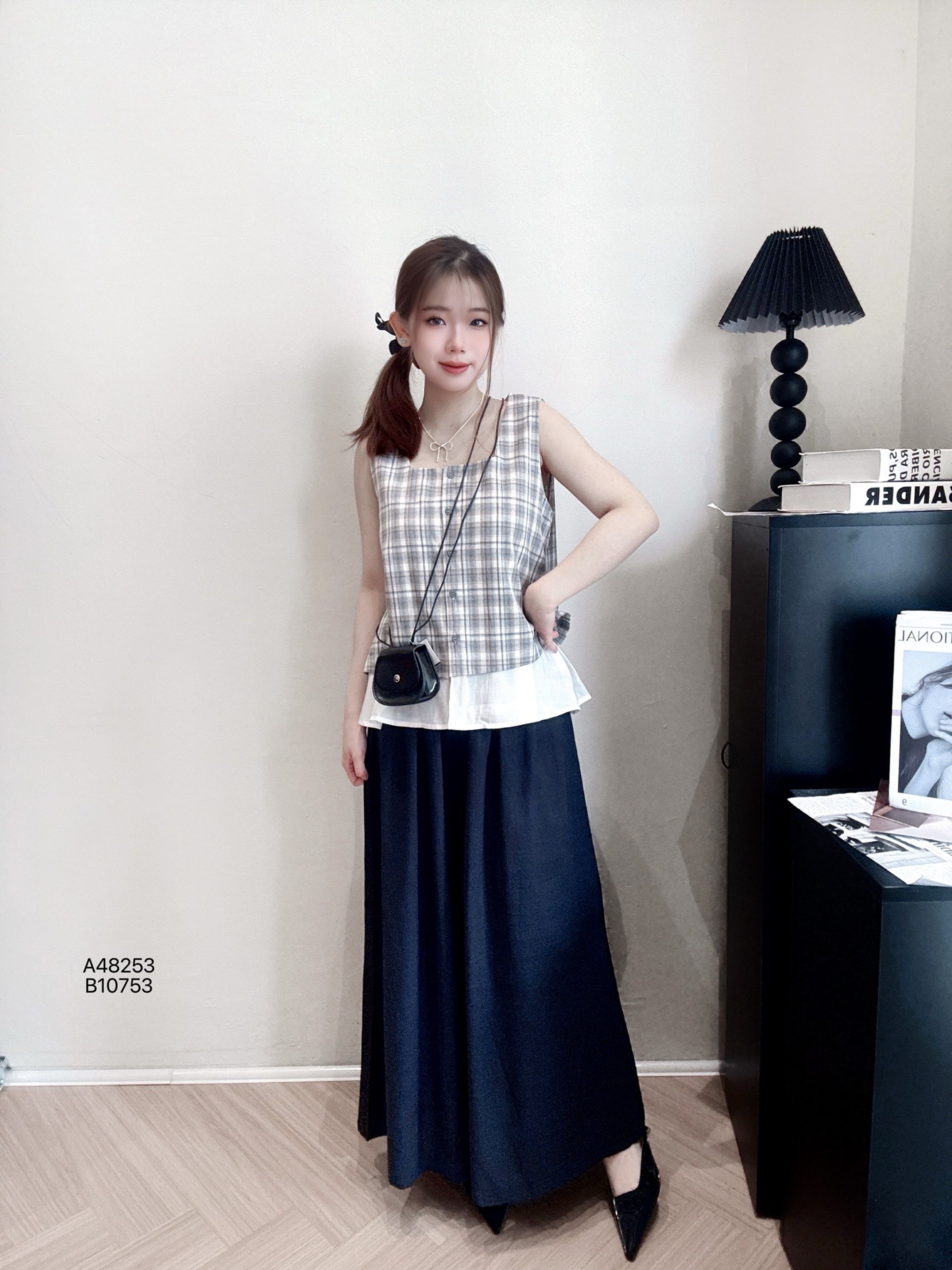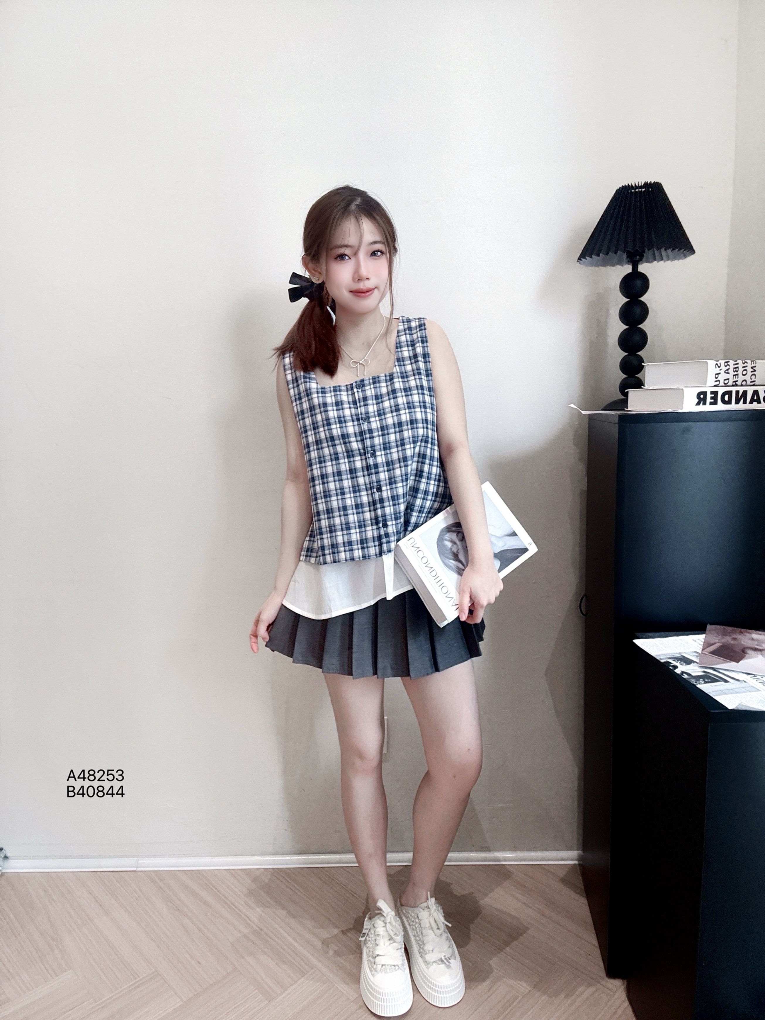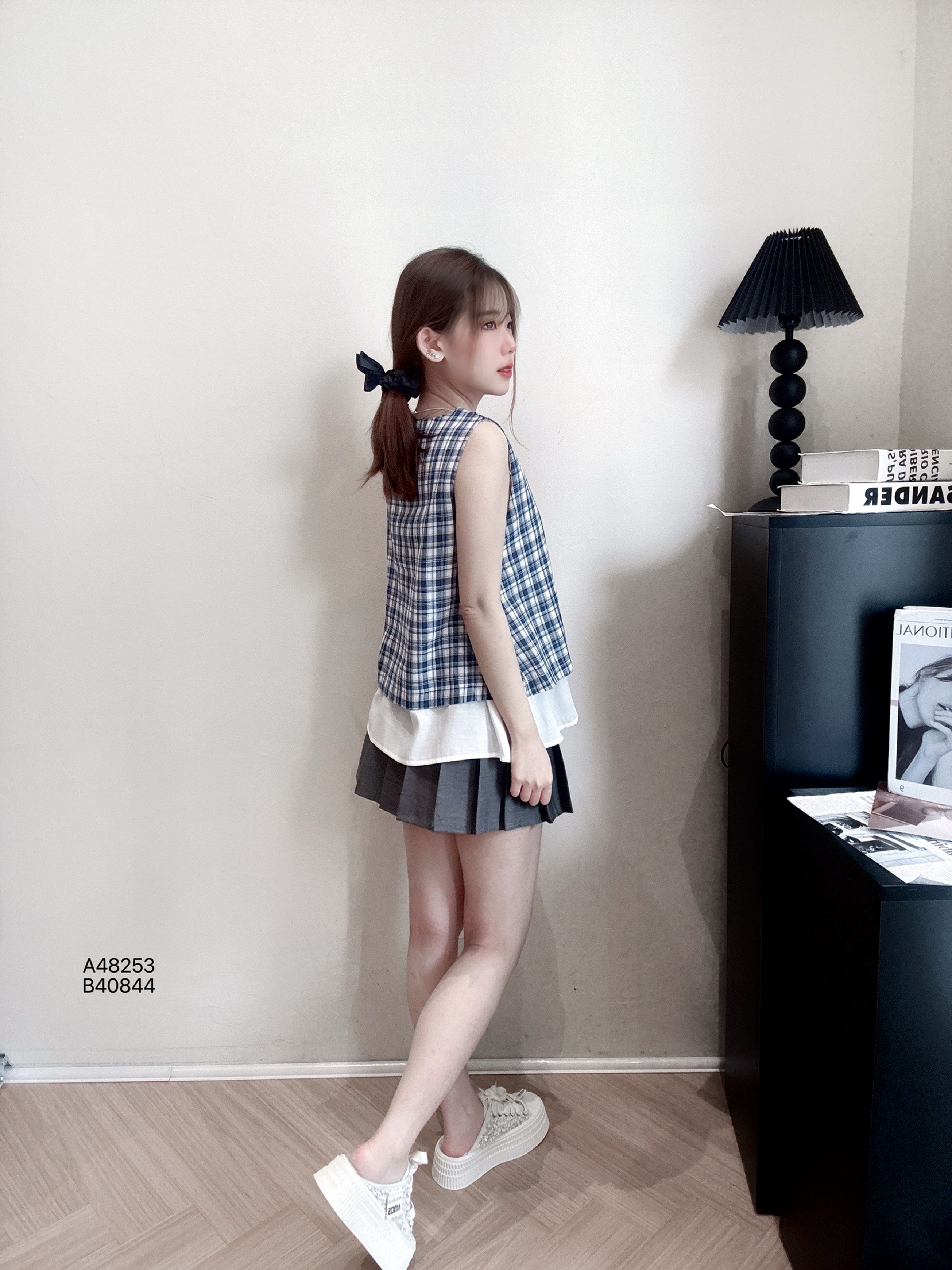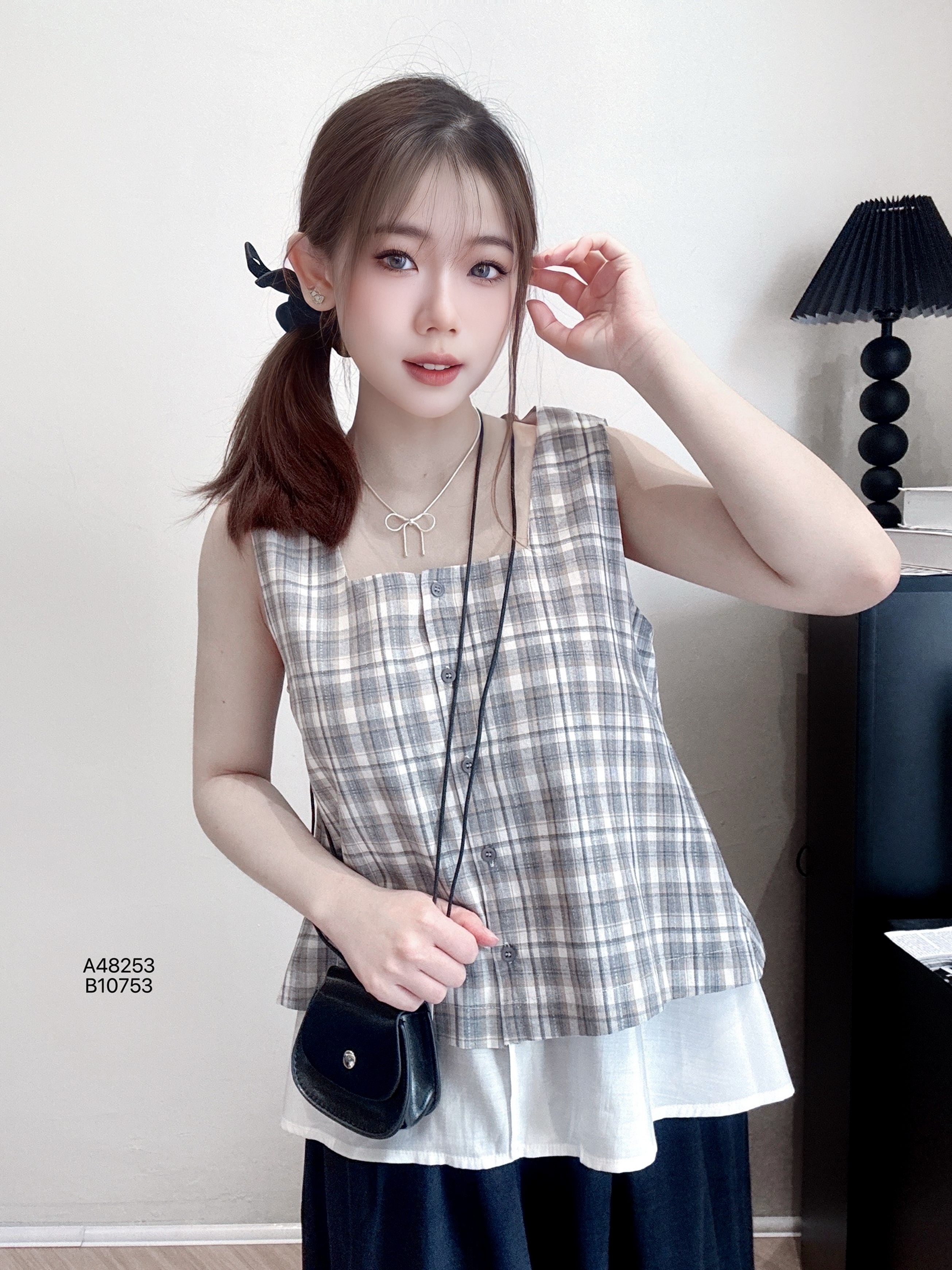 A48253法式复古格子拼接上衣PRICE|RM59胸围92cm|长度55cm