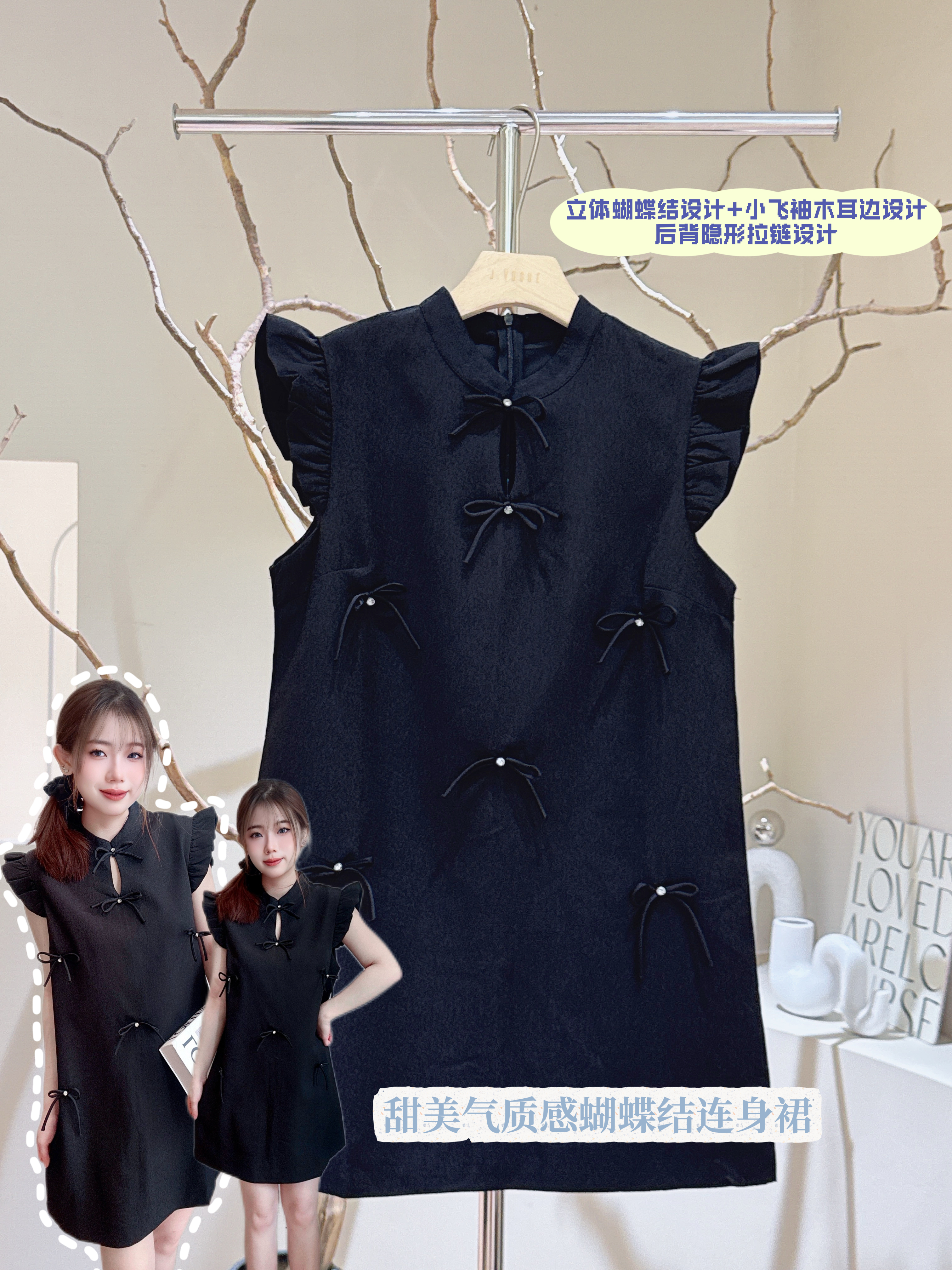 A49253新中式蝴蝶结小飞袖连衣裙PRICE|RM89胸围92-96cm|长度80cm