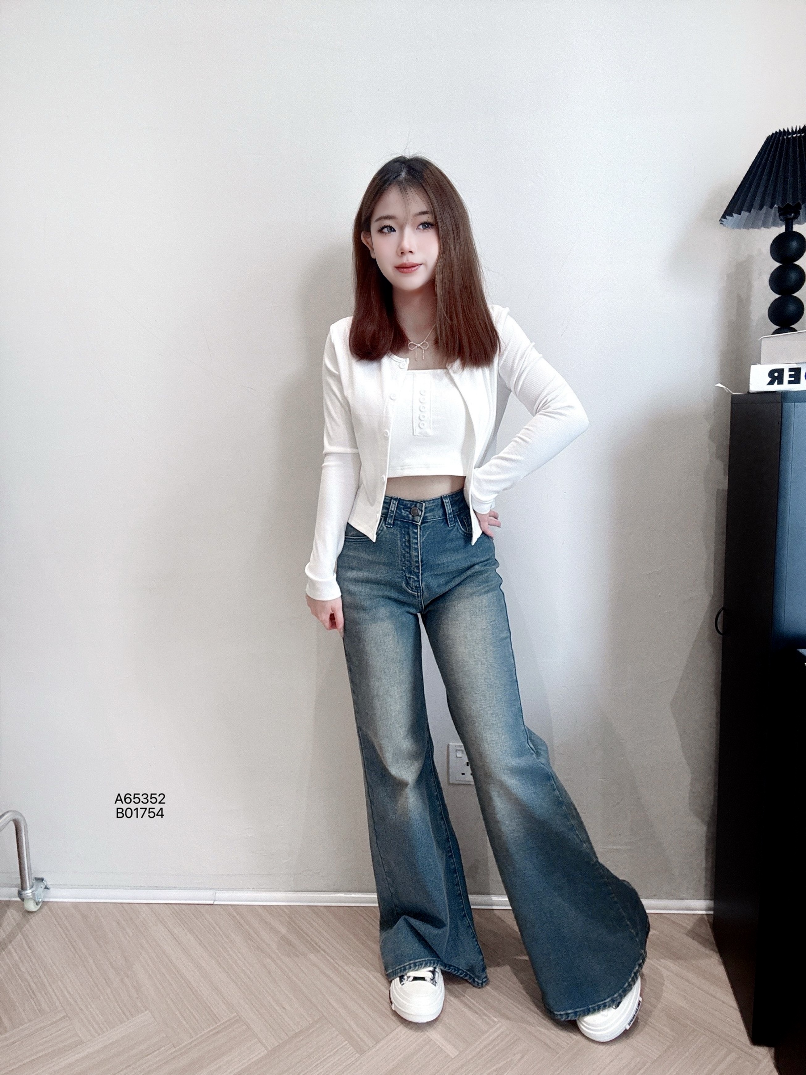 B01754港式“复古风微喇牛仔裤PRICE|RM89S⬇️腰围60-64cm|臀围86-88cm|长度103cmM⬇️腰围68-70cm|臀围90-94cm|长度104cmL⬇️腰围70-72cm|臀围94-96cm|长度106cm
