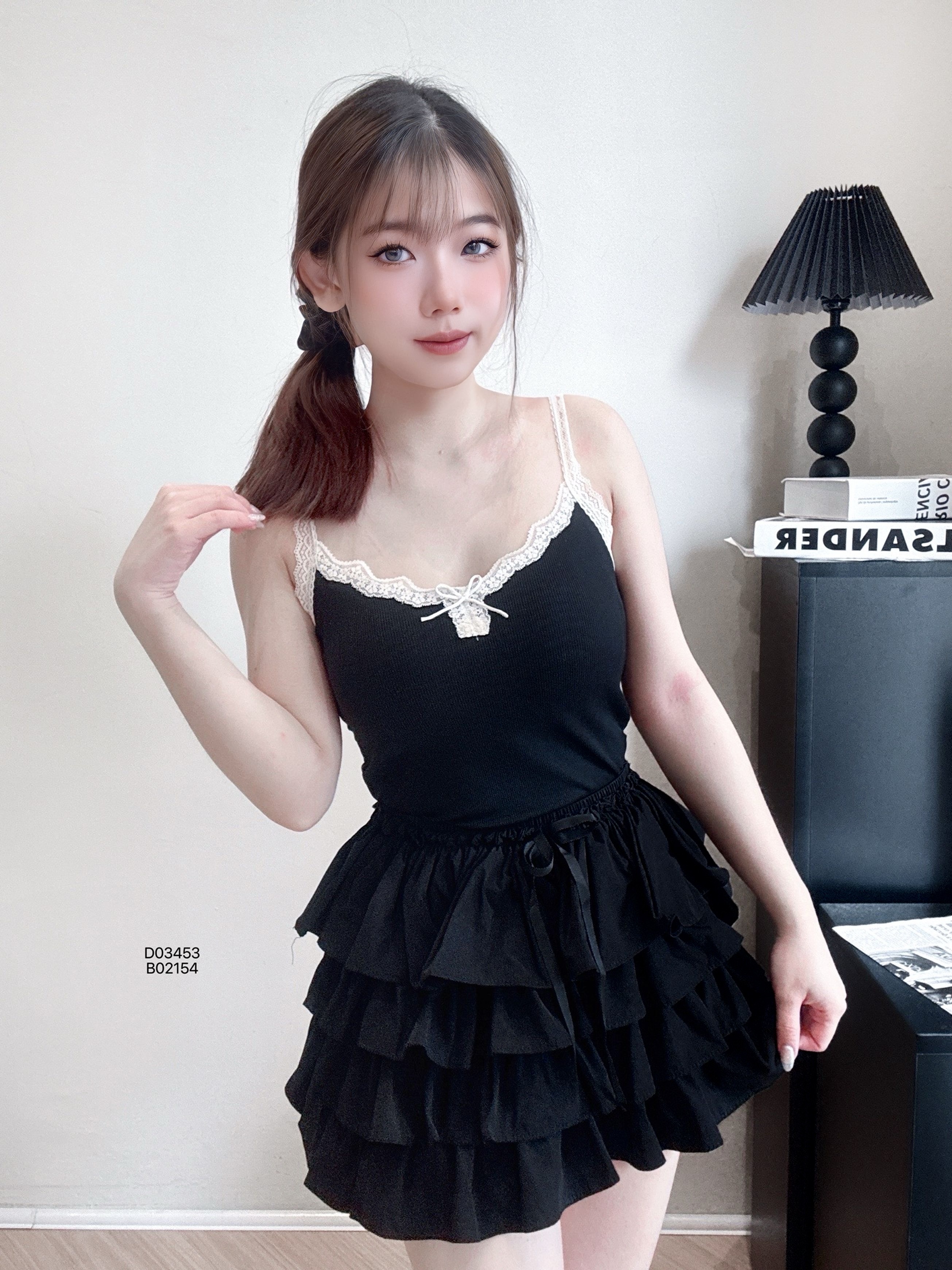 蕾絲蝴蝶結迷你百褶褲裙 RM 49.00