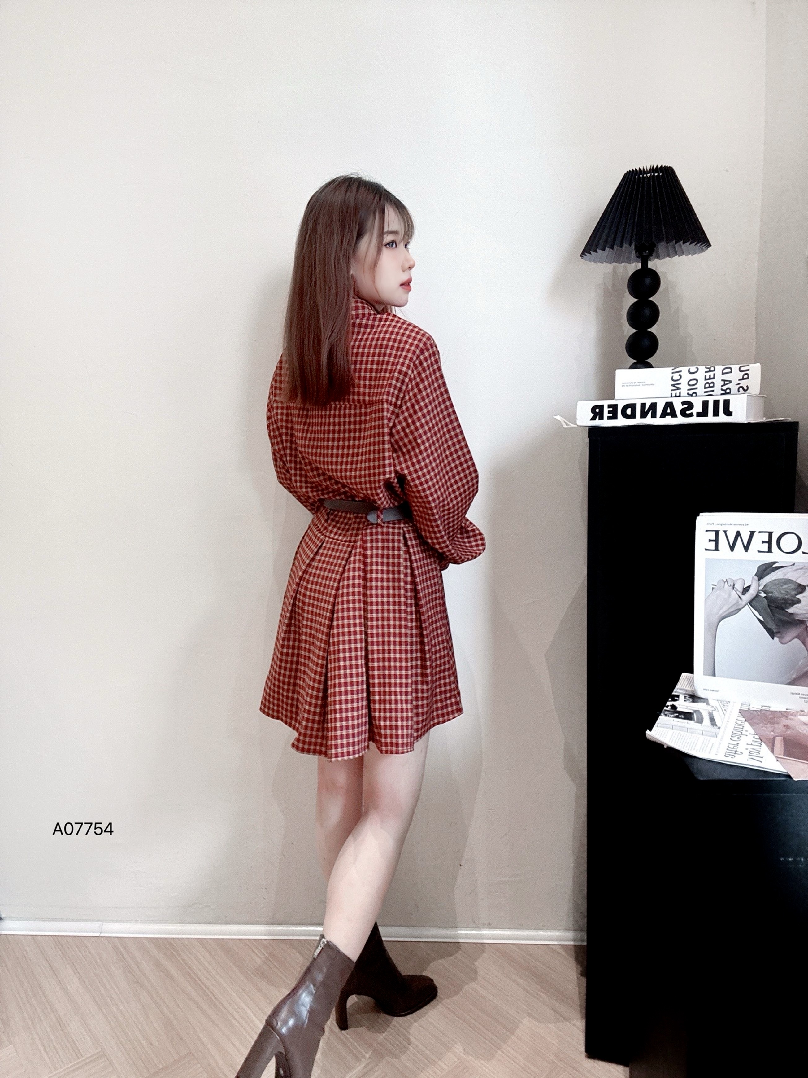 A07754复古格子长袖衬衫连衣裙PRICE|RM86肩宽44cm|胸围102cm|长度86cm
