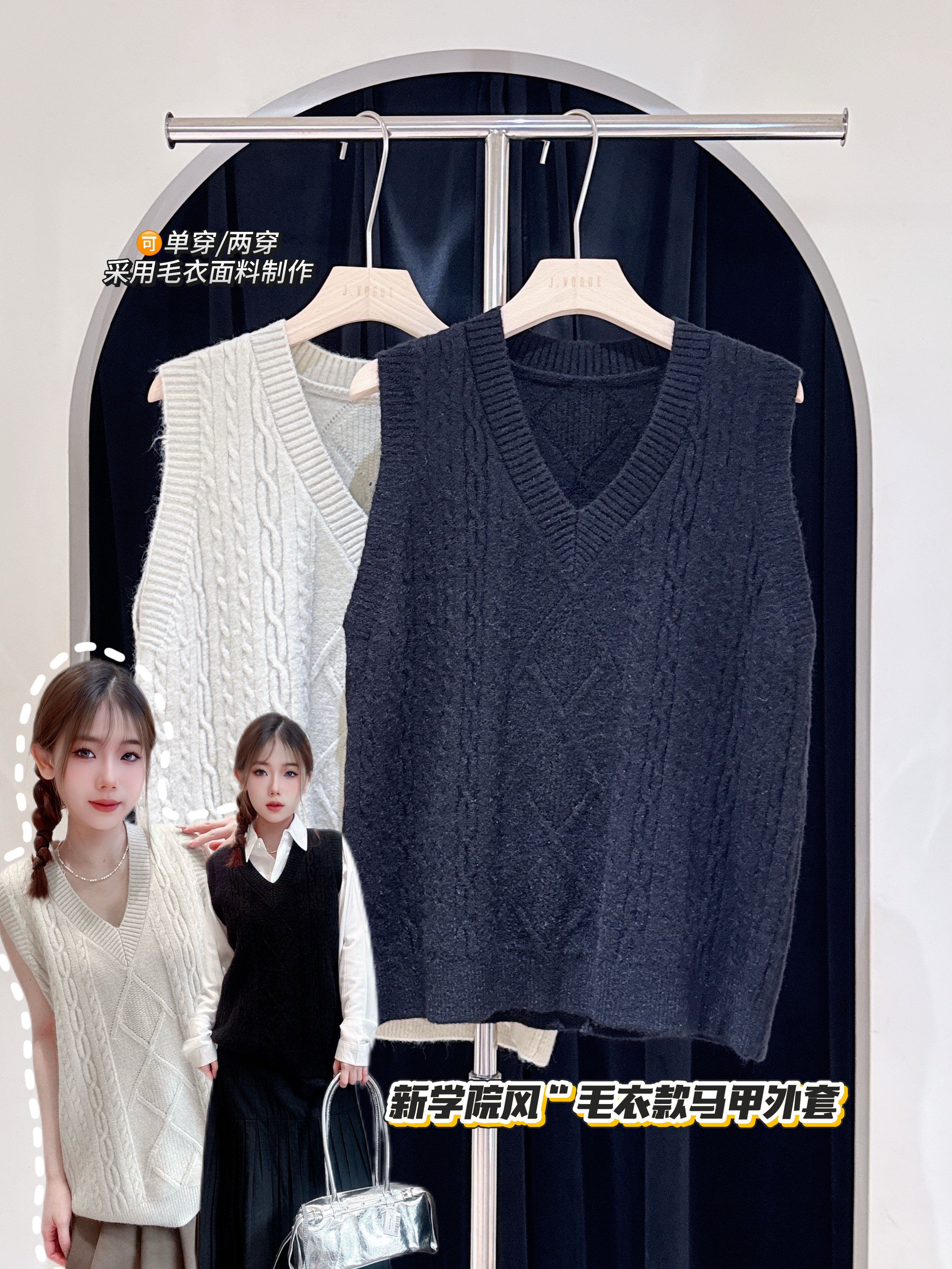 A09154新款“学院风”针织V领马甲PRICE| RM46胸围94-110cm|长度60cm