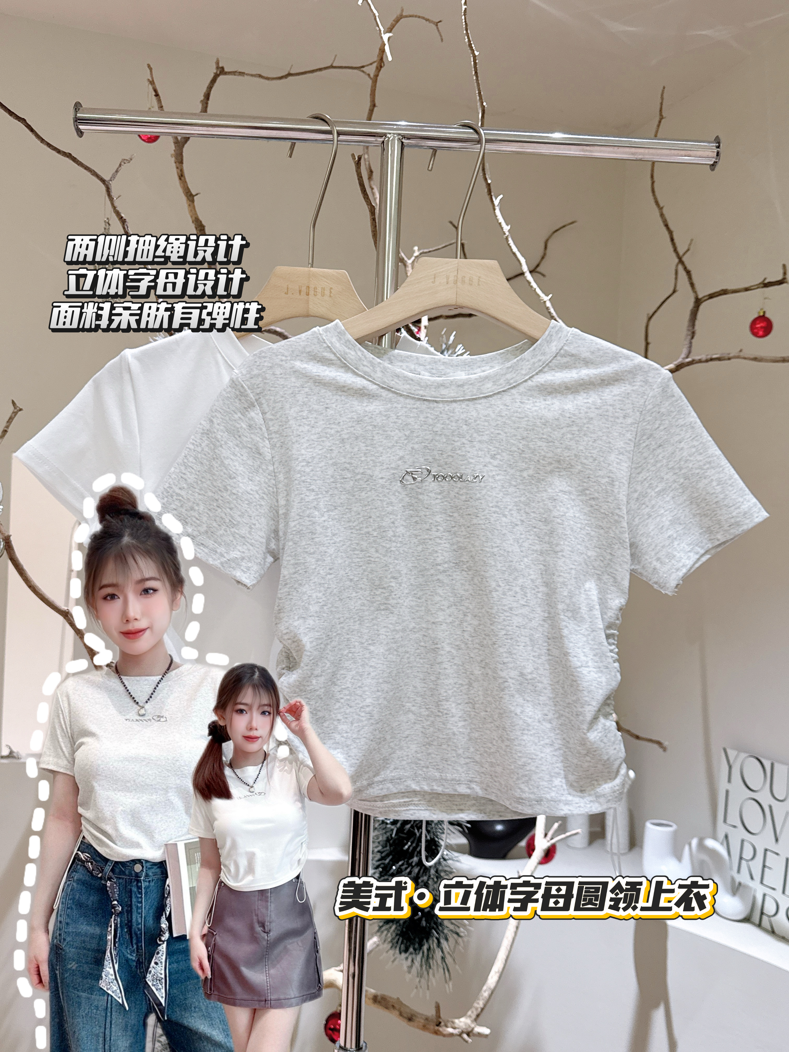 A12554新款“立体字母抽绳上衣PRICE| RM36肩宽35cm|胸围78-88cm|长度42cm