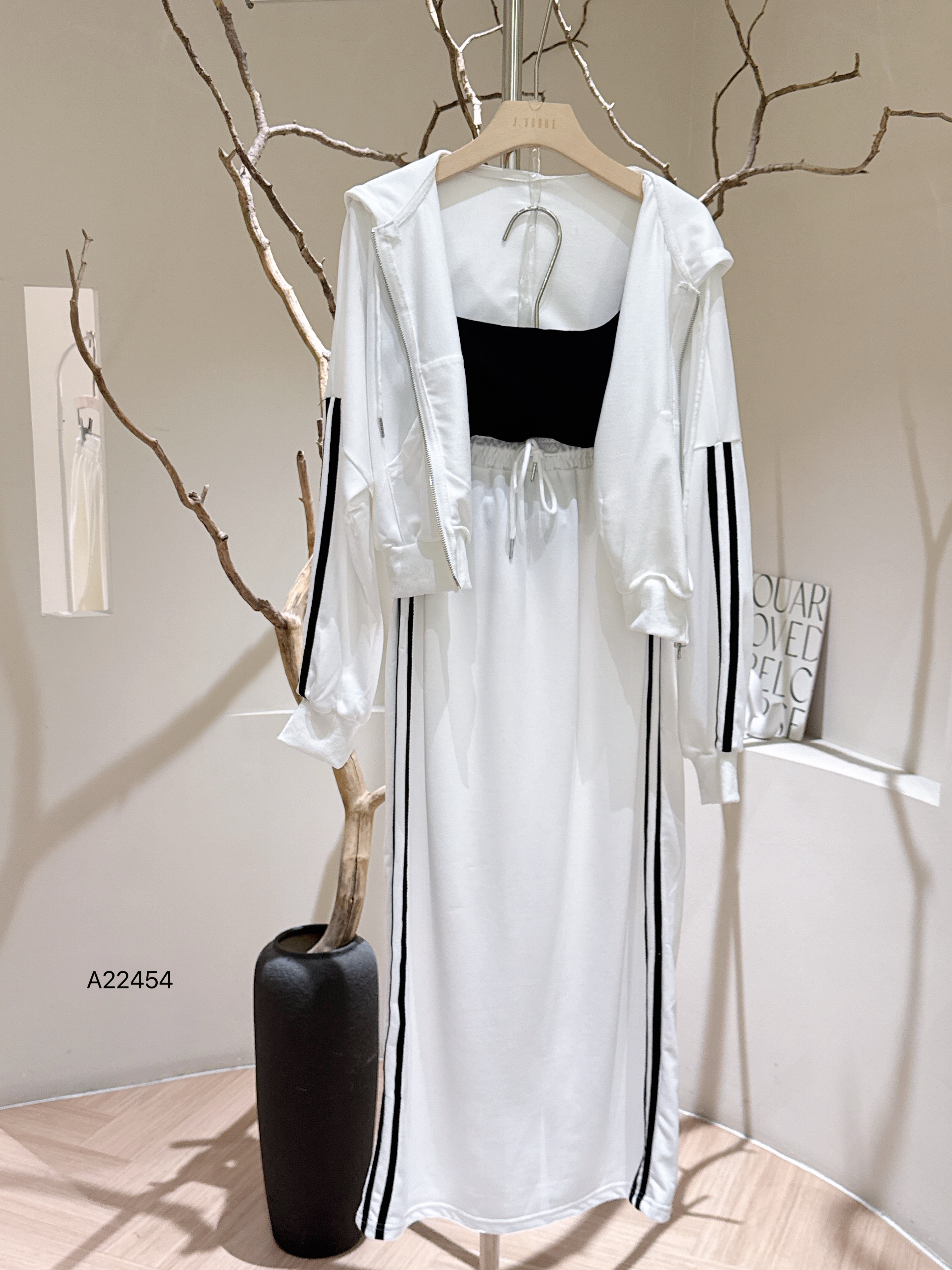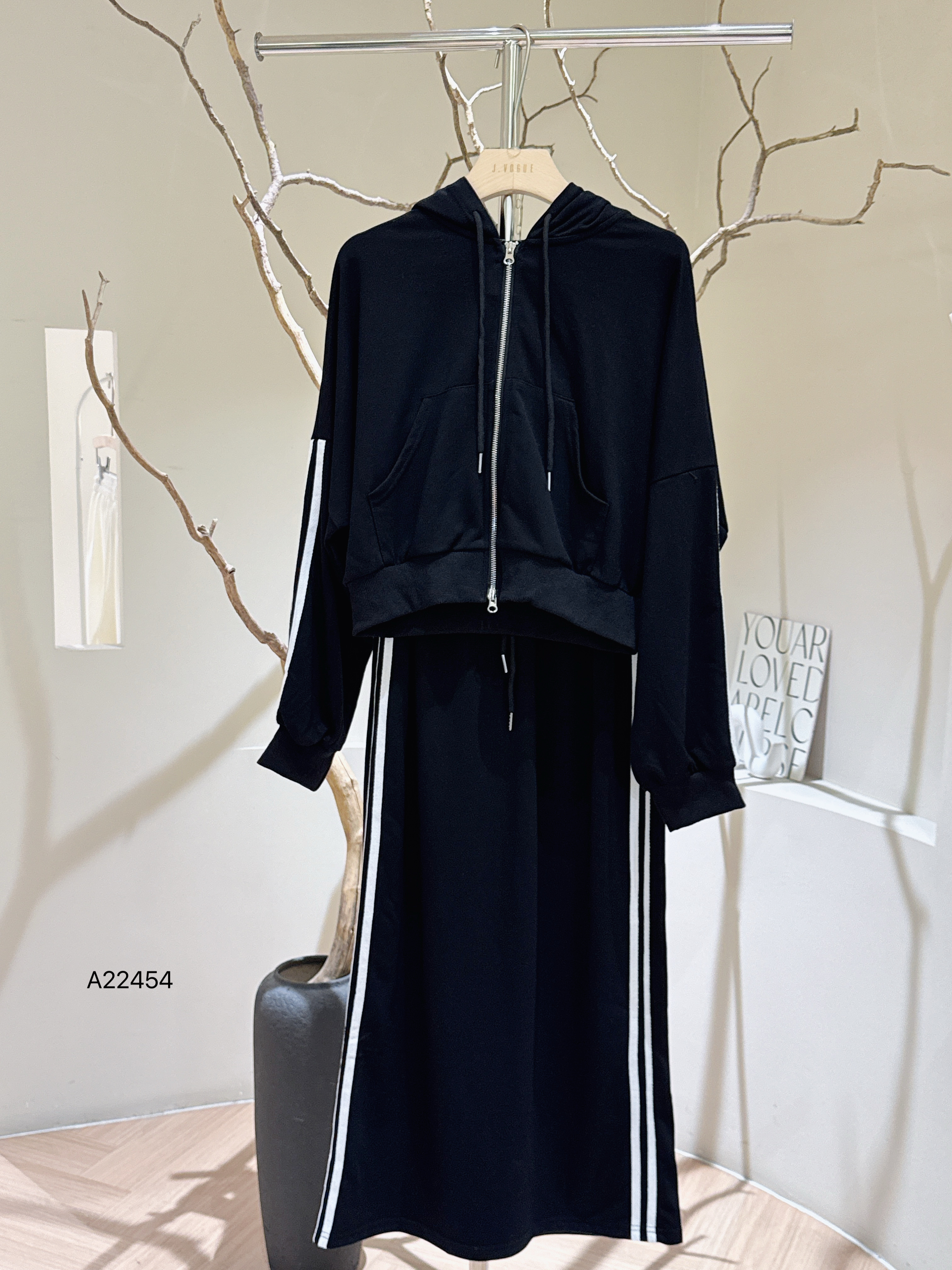 A22454新款休闲运动风连帽套装PRICE| RM85衣:肩宽74cm|胸围126cm|长度44cm裙:腰围60-84cm|臀围94-102cm|长度92cm
