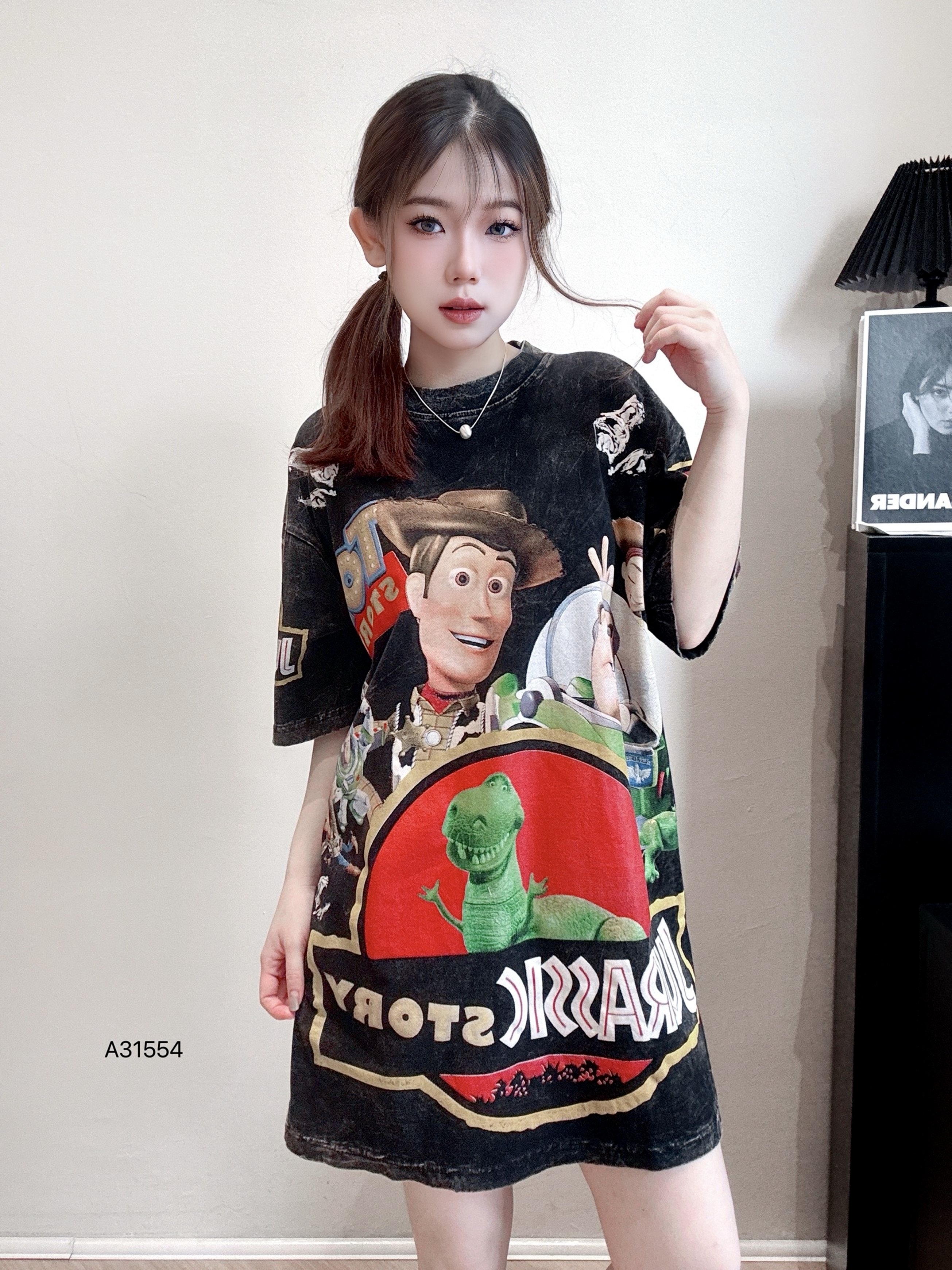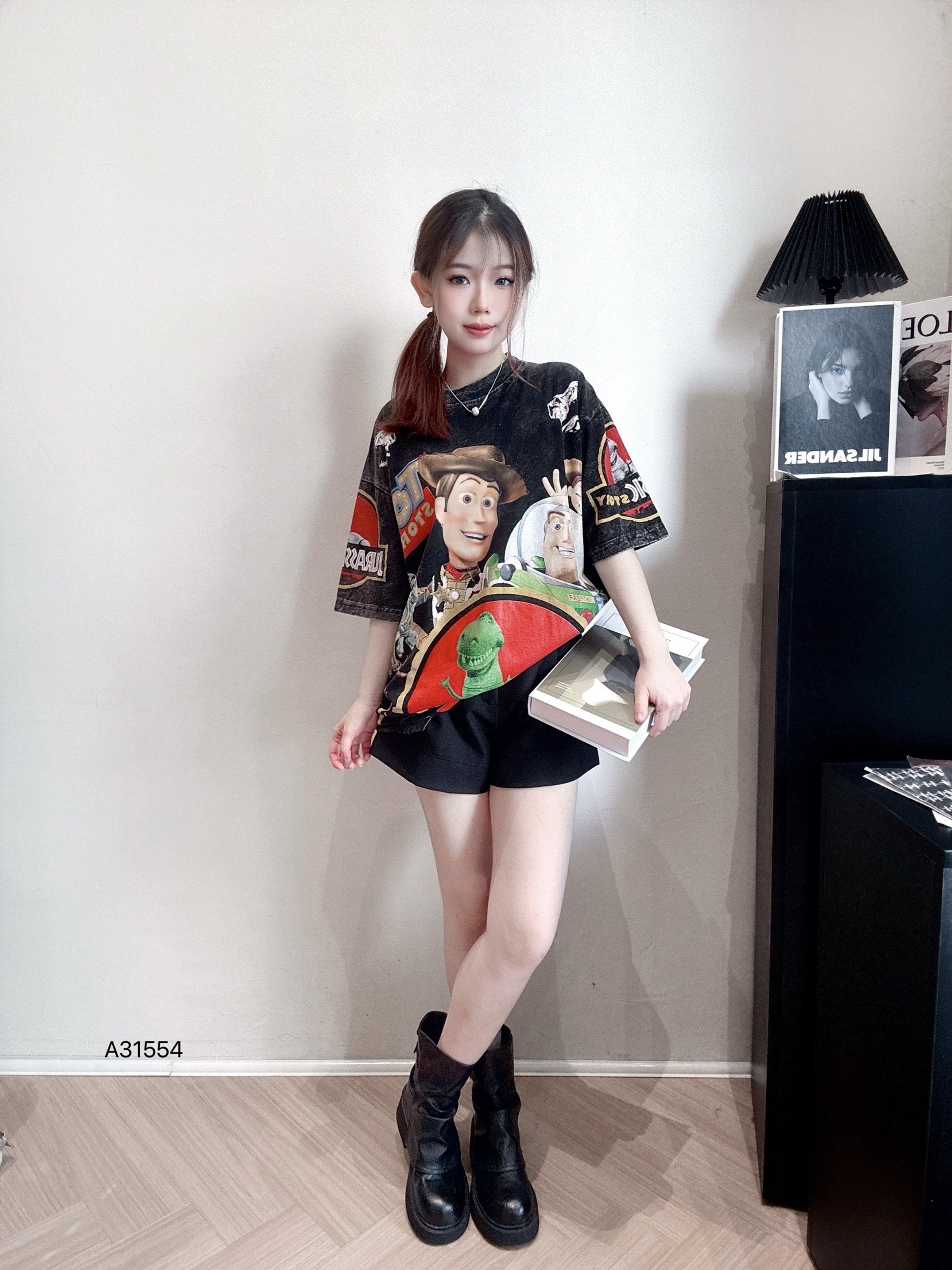 A31554复古做旧卡通印花上衣PRICE|RM46肩宽51cm|胸围108-118cm|长度78cm