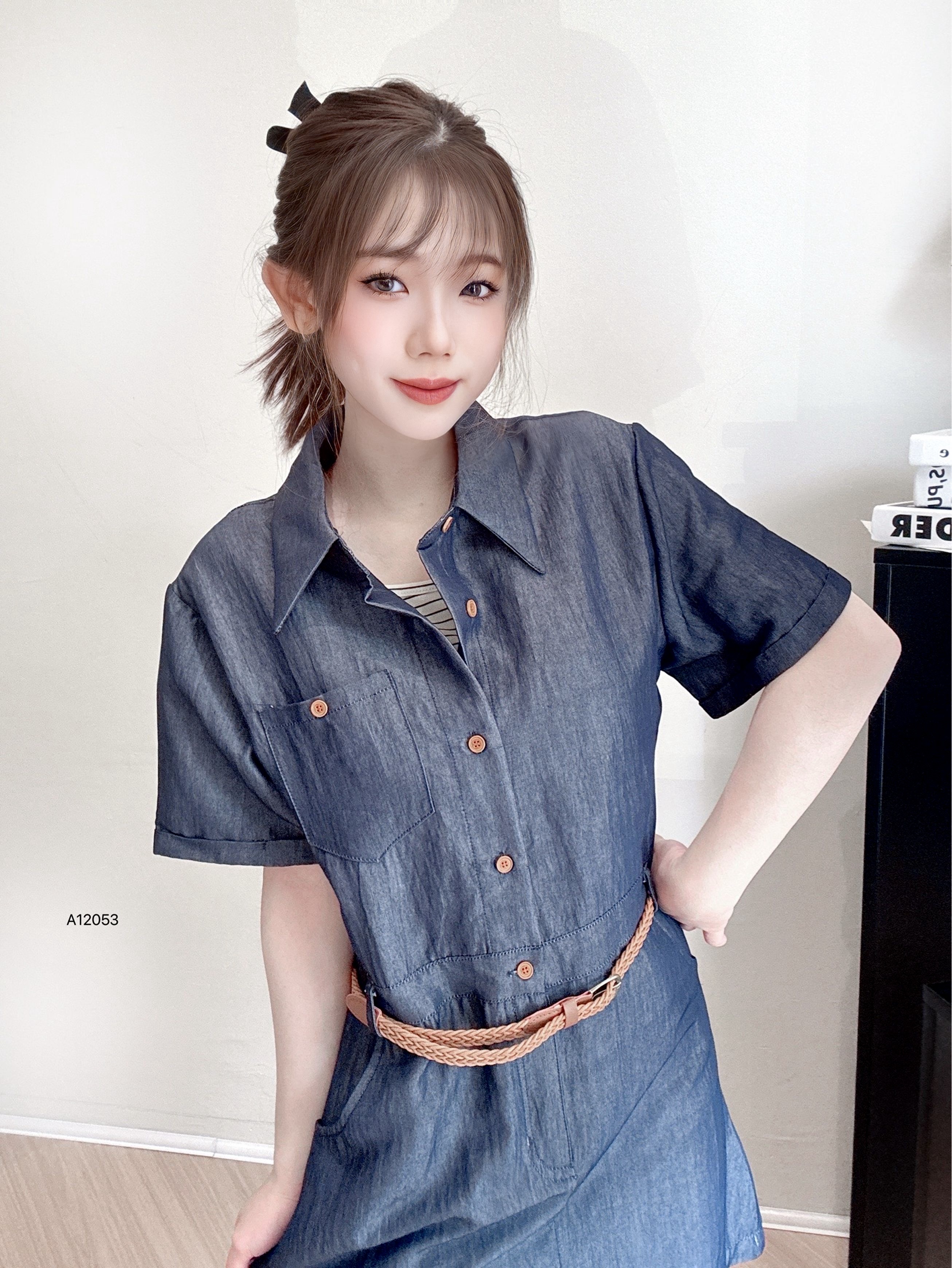 港风收腰设计POLO领高端牛仔连衣裙 【包括腰带】 RM 106.00