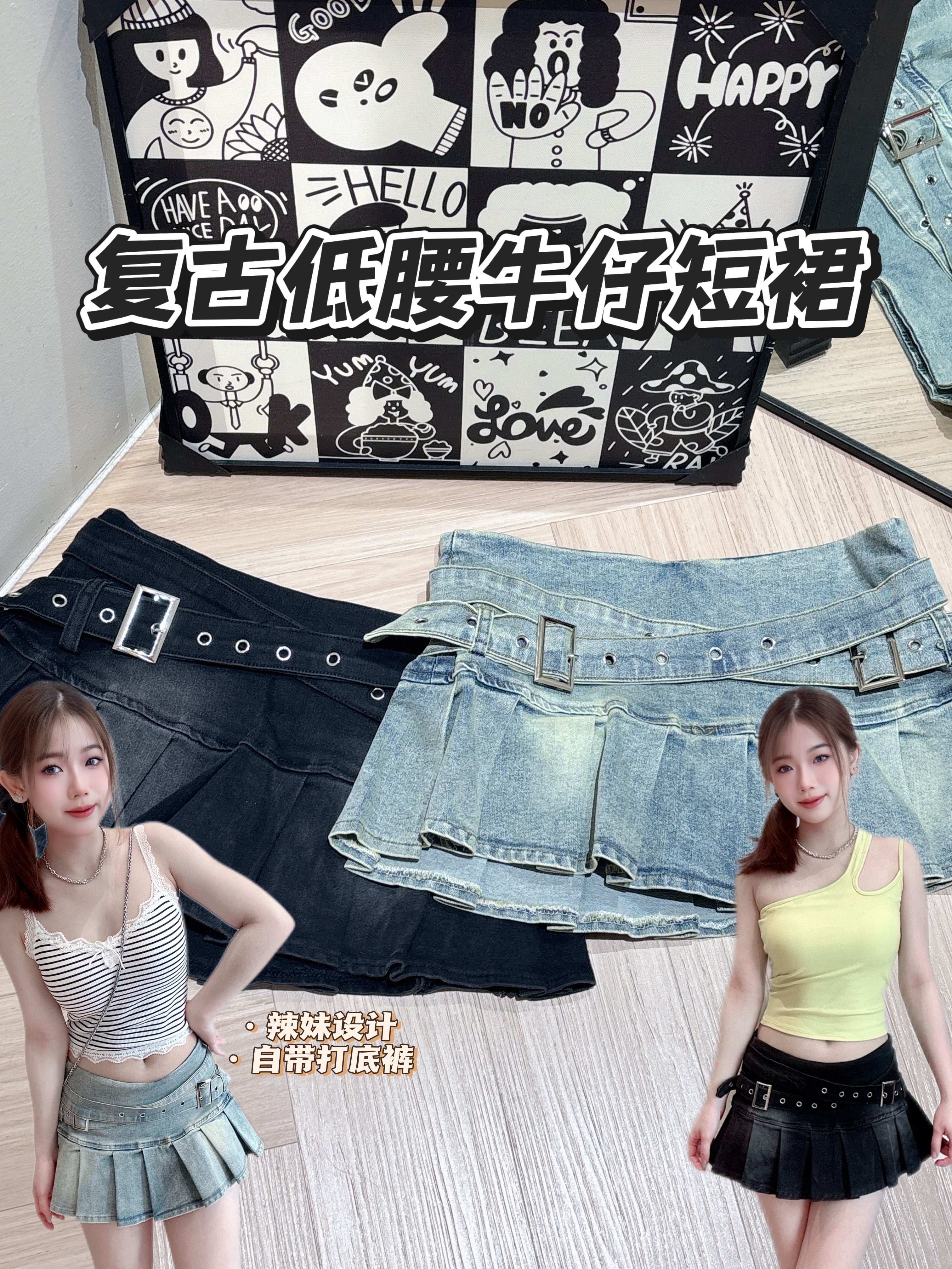 B10853辣妹复古低腰牛仔短裙PRICE|RM65S:腰围64-74cm|臀围74-80cm|长度26cmM:腰围70-80cm|臀围78-84cm|长度26cmL:腰围76-84cm|臀围88-92cm|长度28cm