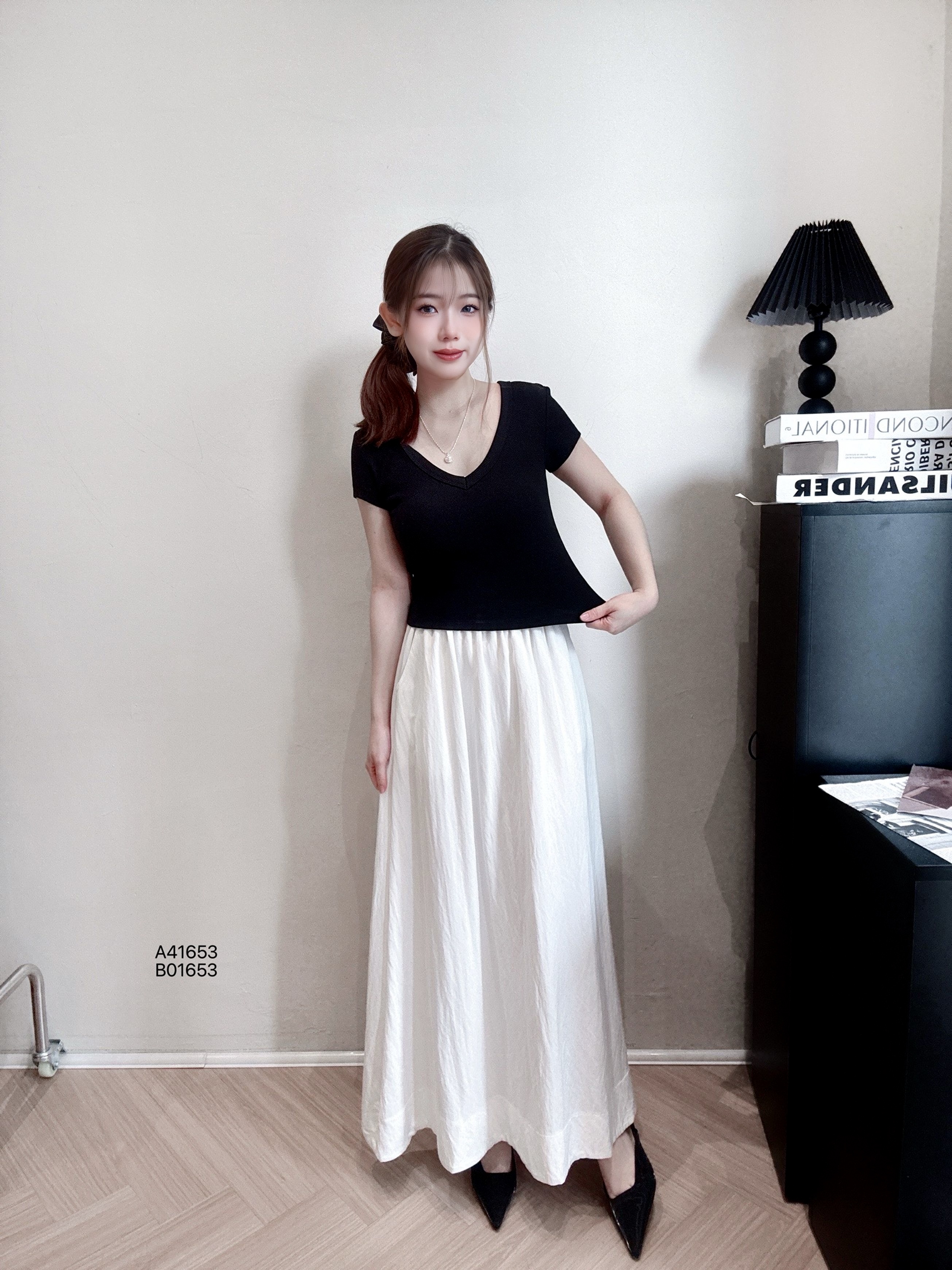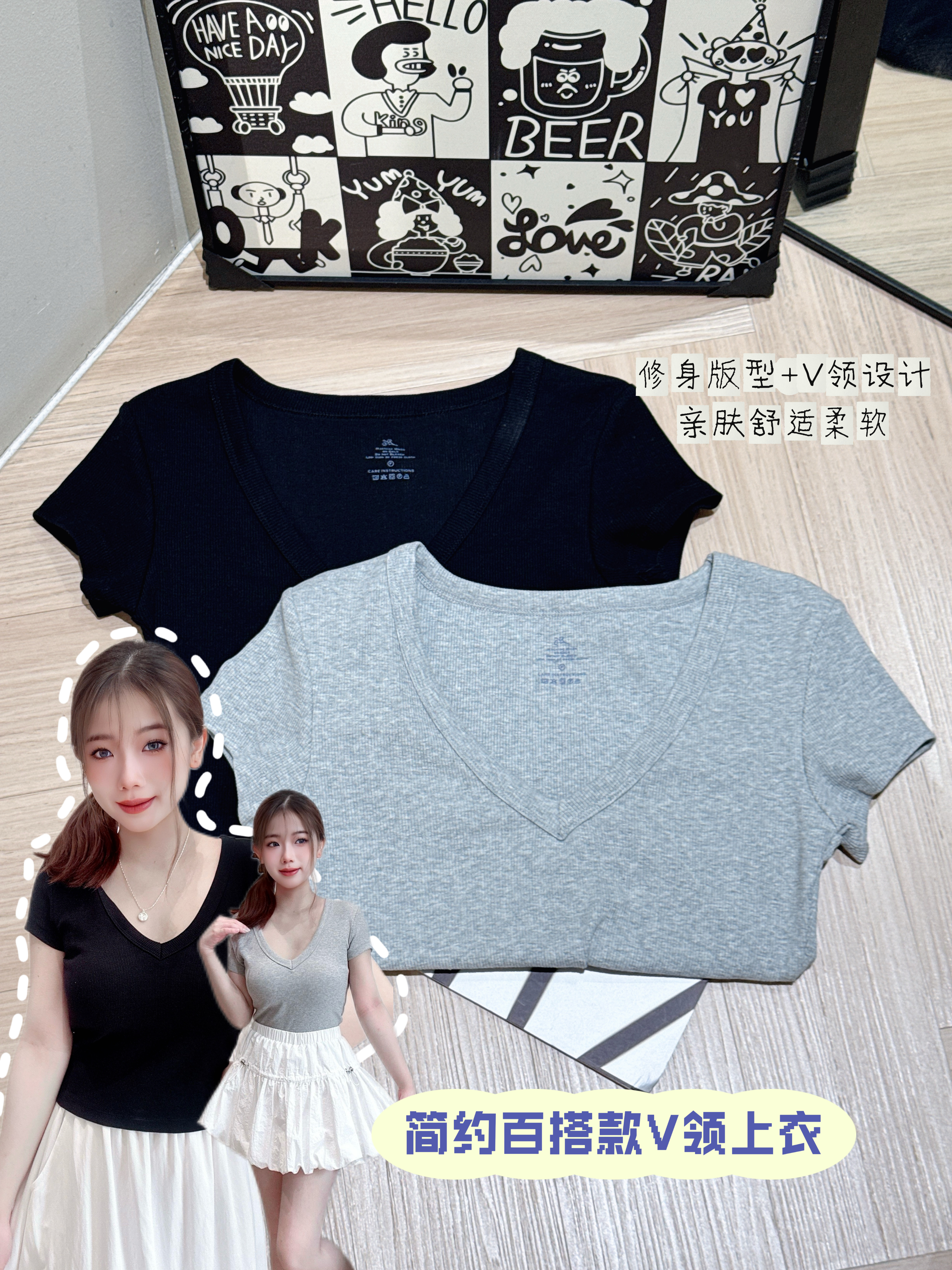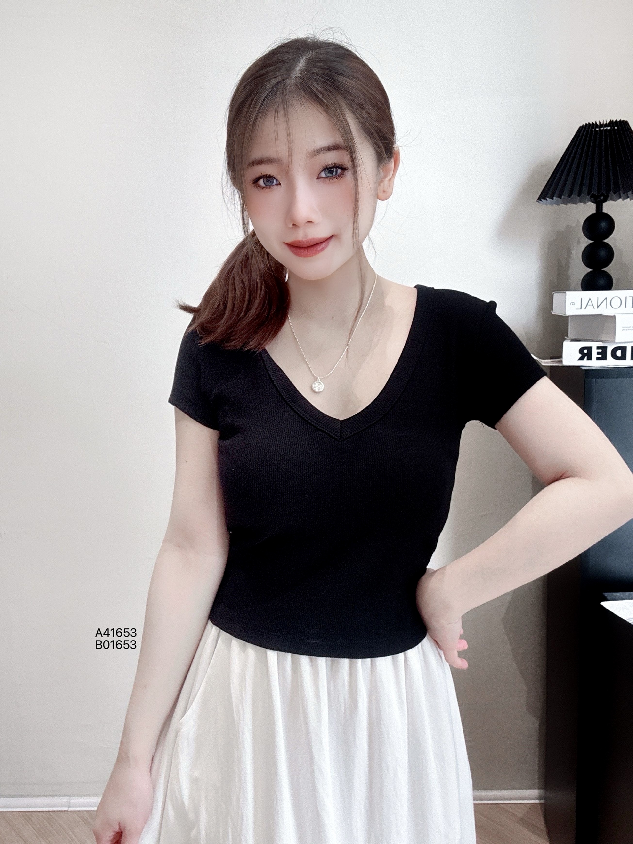A41653深V修身针织短袖PRICE|RM48肩宽35cm|胸围70-84cm|长度41cm